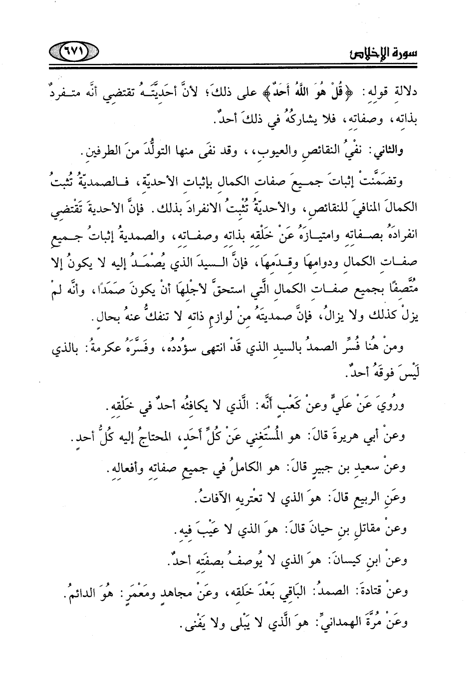 وتضَمَّنتْ إثباتَ جميعَ صفاتِ الكمالِ بإثباتِ الأحديّةِ، فالصمديّةُ تُثبتُ