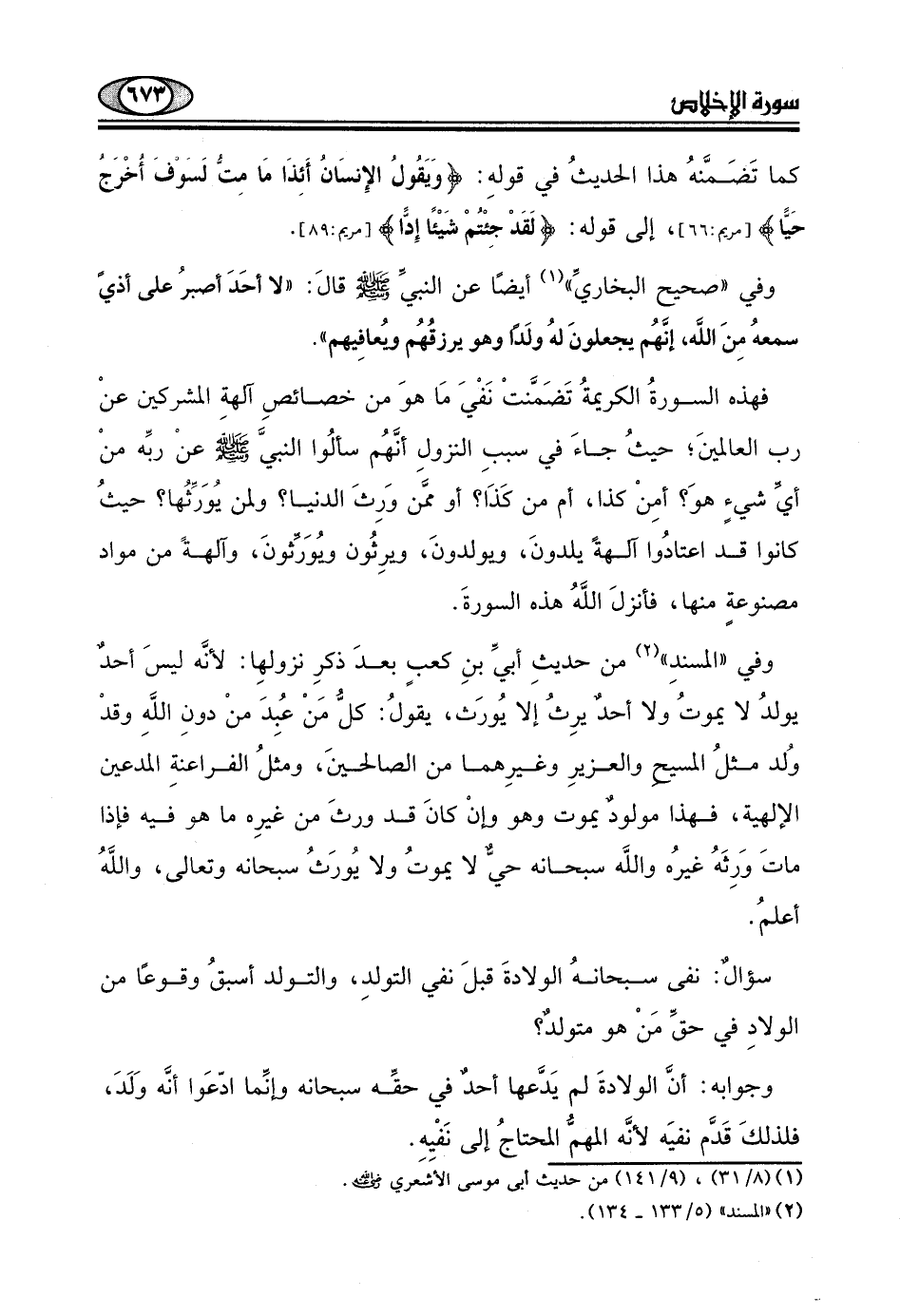 سؤالٌ: نفى سبحانهُ الولادةَ قبلَ نفي التولدِ، والتولد أسبقُ وقوعًا من