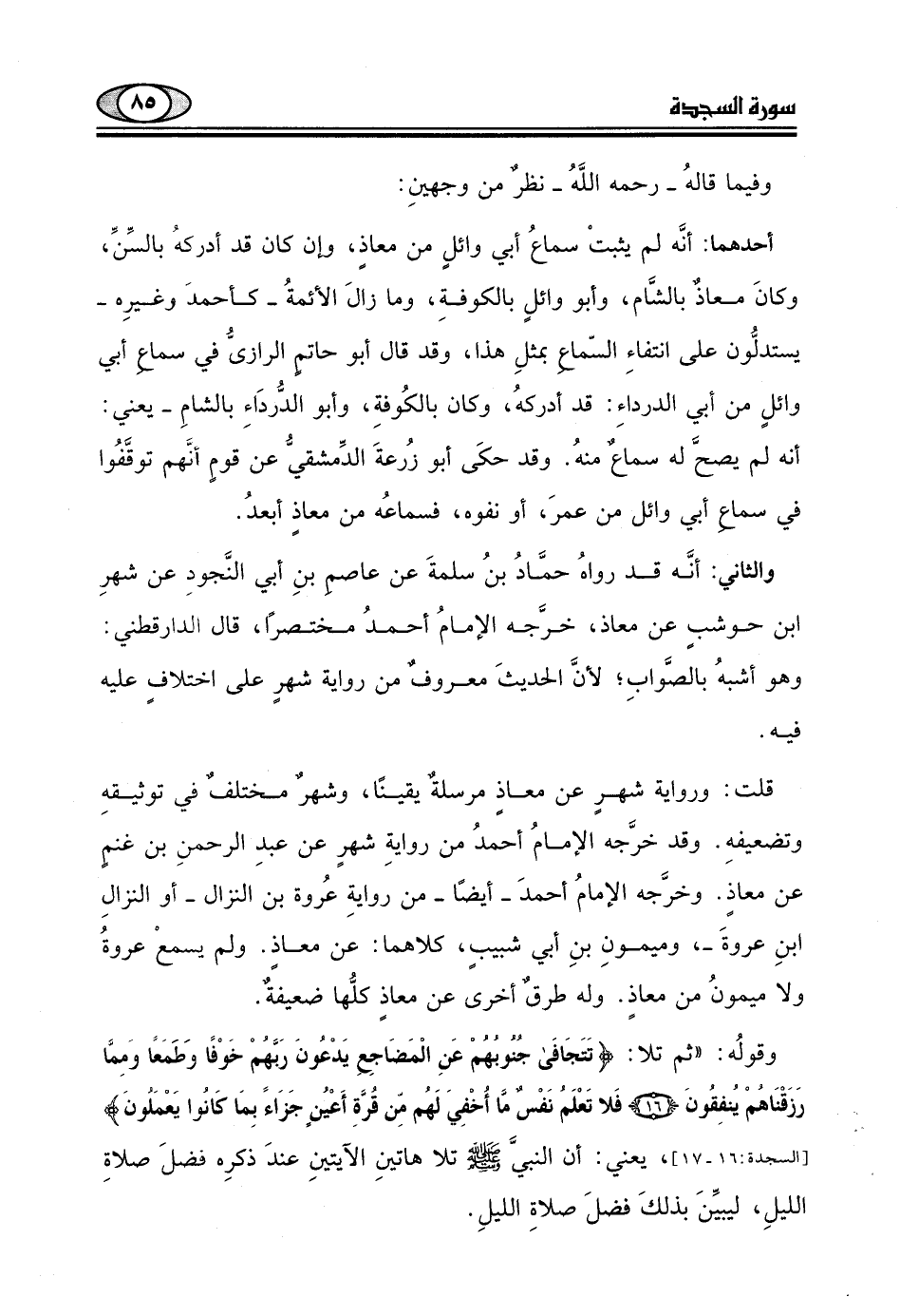 قلت: ورواية شهر عن معاذ مرسلة يقينا، وشهر مختلف في توثيقهِ