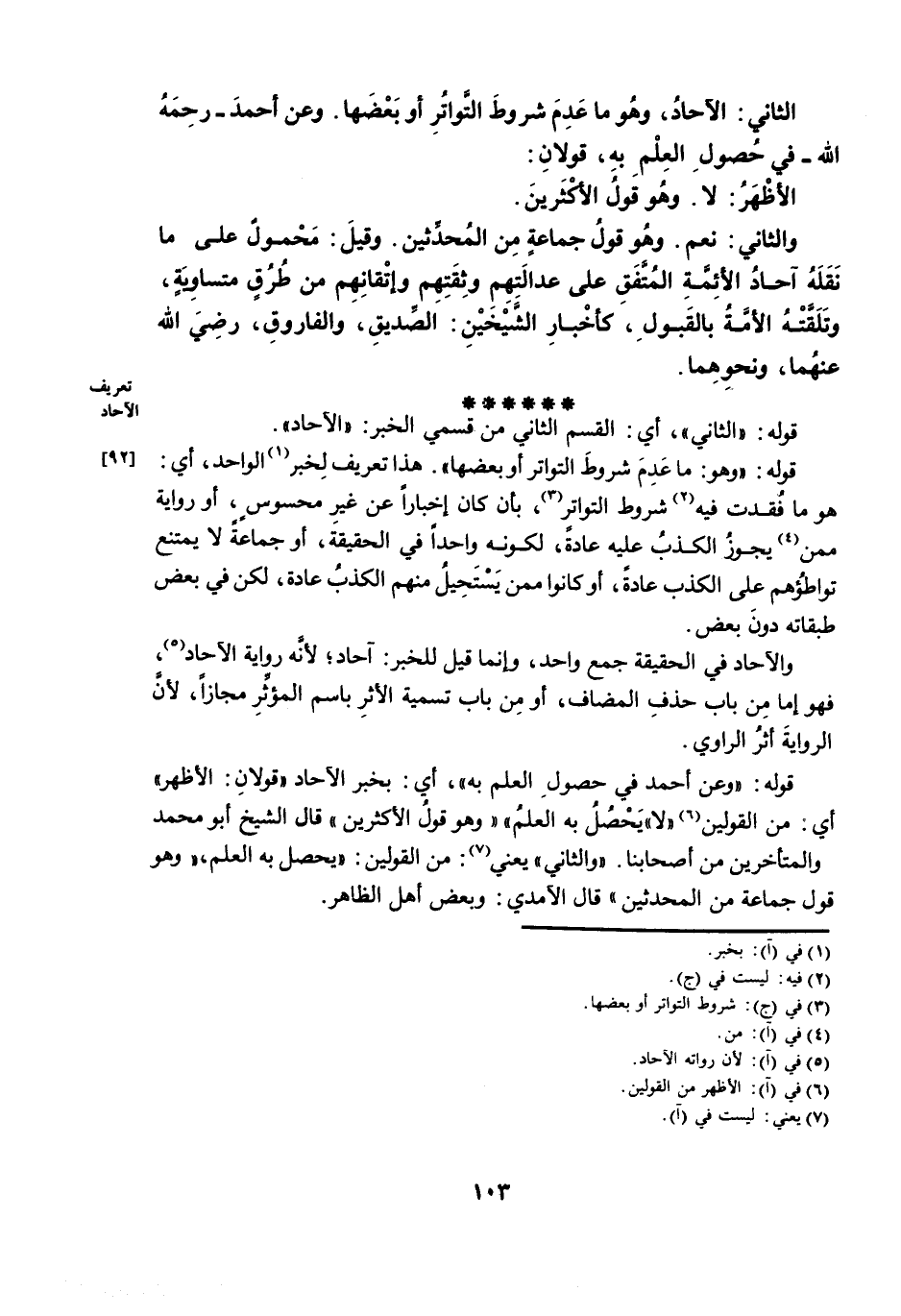 قَوْلُهُ: «الثَّانِي» ، أَيِ: الْقِسْمُ الثَّانِي مِنْ قِسْمَيِ الْخَبَرِ: «الْآحَادُ» .