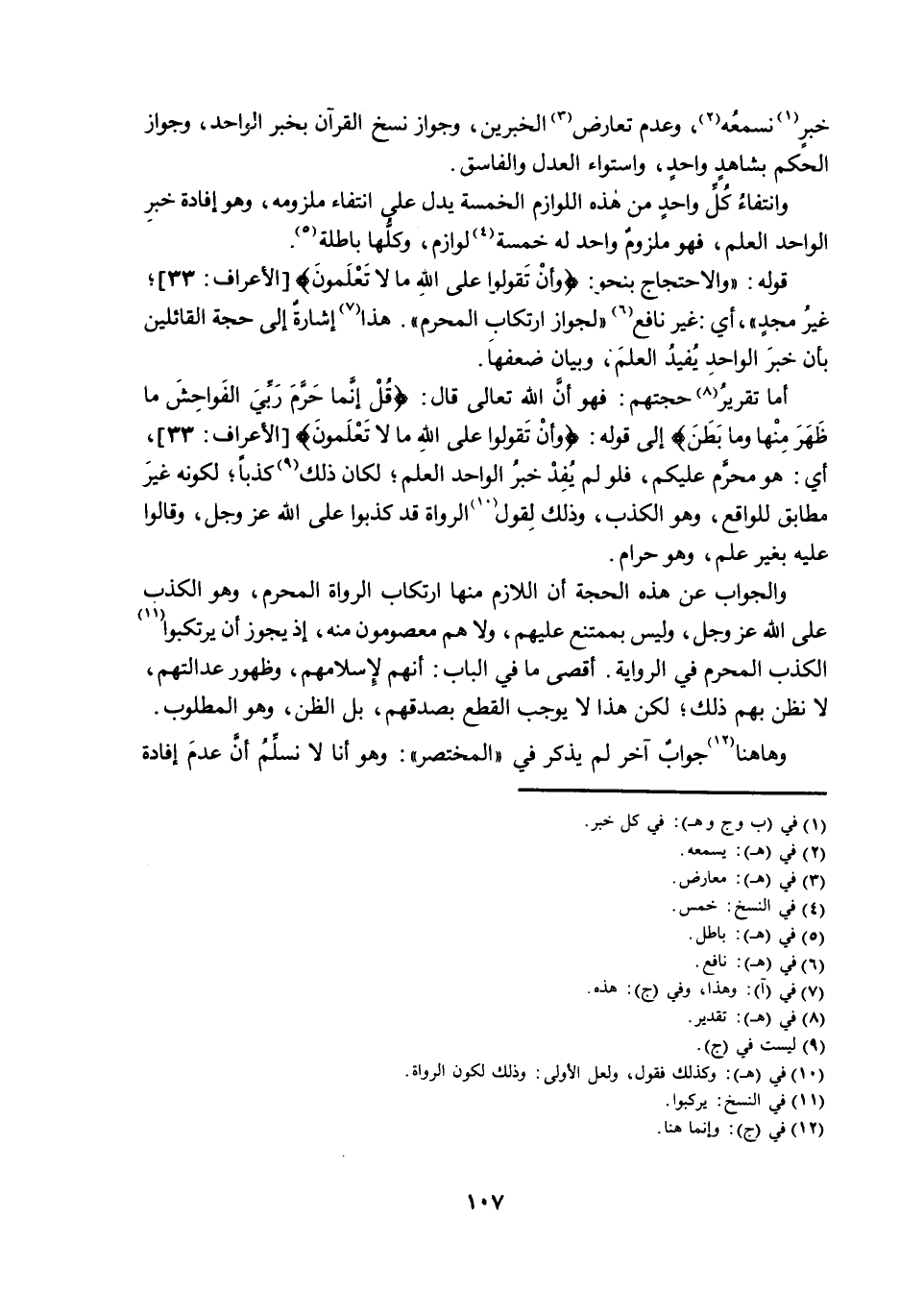 قَوْلُهُ: «وَالِاحْتِجَاجُ بِنَحْوِ: {وَأَنْ تَقُولُوا عَلَى اللَّهِ مَا لَا تَعْلَمُونَ} [الْأَعْرَافِ: 33] ، غَيْرُ مُجْدٍ» ، أَيْ: غَيْرُ نَافِعٍ «لِجَوَازِ ارْتِكَابِ الْمُحَرَّمِ» ، هَذَا إِشَارَةٌ إِلَى حُجَّةِ الْقَائِلِينَ بِأَنَّ خَبَرَ الْوَاحِدِ يُفِيدُ الْعِلْمَ، وَبَيَانِ ضَعْفِهَا.