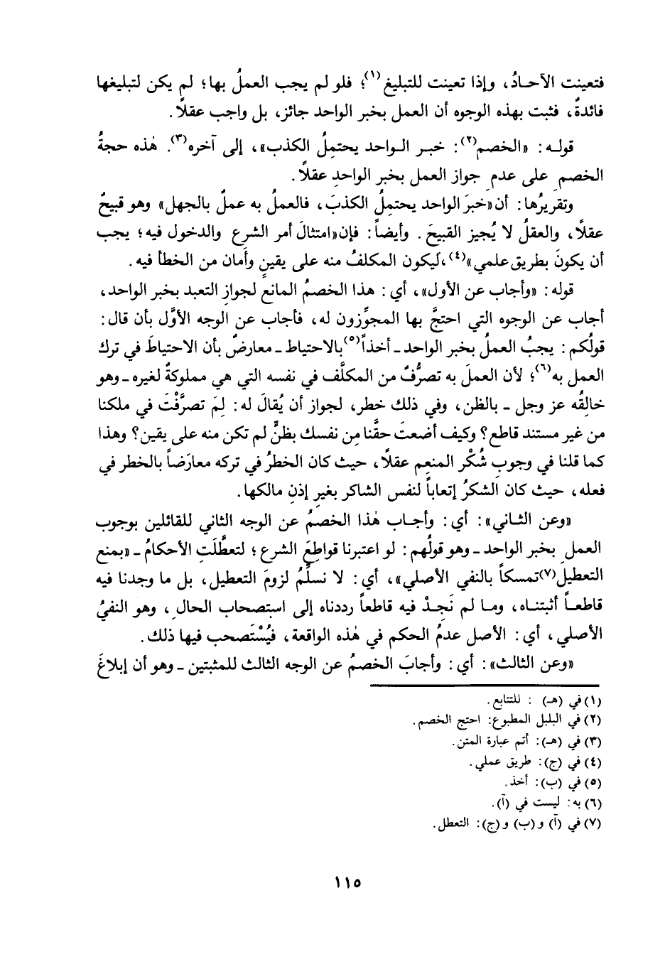 فَتَعَيَّنَتِ الْآحَادُ، وَإِذَا تَعَيَّنَتْ لِلتَّبْلِيغِ، فَلَوْ لَمْ يَجِبِ الْعَمَلُ بِهَا، لَمْ يَكُنْ لِتَبْلِيغِهَا فَائِدَةٌ؛ فَثَبَتَ بِهَذِهِ الْوُجُوهِ أَنَّ الْعَمَلَ بِخَبَرِ الْوَاحِدِ جَائِزٌ، بَلْ وَاجِبٌ عَقْلًا.
