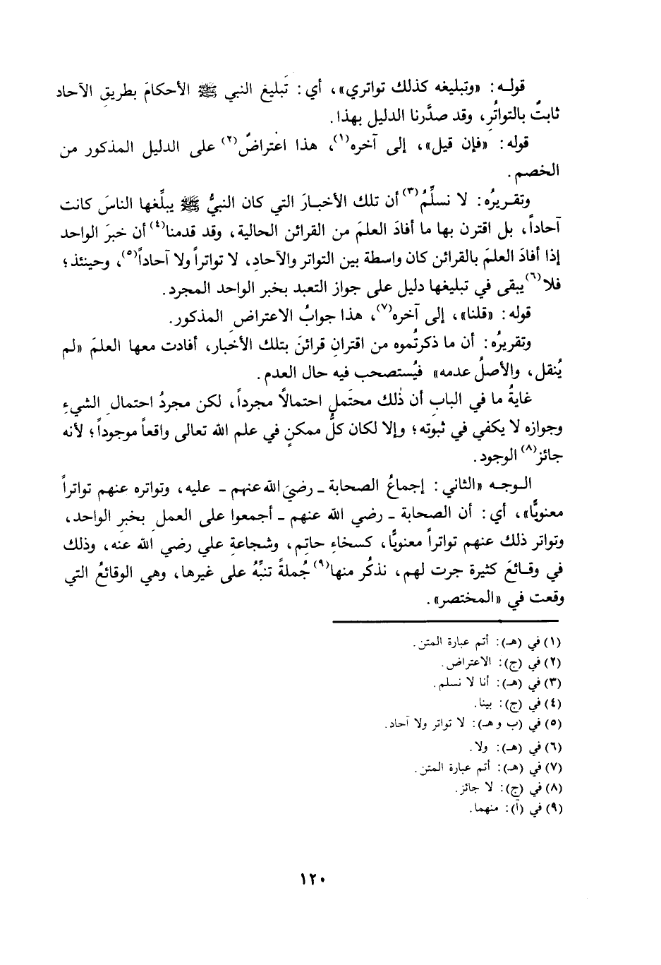 وَتَقْرِيرُهُ: لَا نُسَلِّمُ أَنَّ تِلْكَ الْأَخْبَارَ الَّتِي كَانَ النَّبِيُّ صَلَّى اللَّهُ عَلَيْهِ وَسَلَّمَ، يُبَلِّغُهَا النَّاسَ كَانَتْ آحَادًا، بَلِ اقْتَرَنَ بِهَا مَا أَفَادَ الْعِلْمَ مِنَ الْقَرَائِنِ الْحَالِيَّةِ، وَقَدْ قَدَّمْنَا أَنَّ خَبَرَ الْوَاحِدِ إِذَا أَفَادَ الْعِلْمَ بِالْقَرَائِنِ كَانَ وَاسِطَةً بَيْنَ التَّوَاتُرِ وَالْآحَادِ، لَا تَوَاتُرًا وَلَا آحَادًا، وَحِينَئِذٍ فَلَا يَبْقَى فِي تَبْلِيغِهَا دَلِيلٌ عَلَى جَوَازِ التَّعَبُّدِ بِخَبَرِ الْوَاحِدِ الْمُجَرَّدِ.