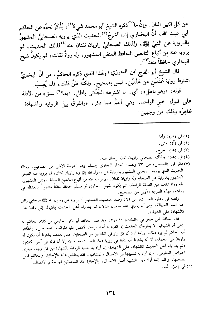 عَنْ كُلِّ اثْنَيْنِ اثْنَانِ. وَأَنَّ مَا ذَكَرَهُ الشَّيْخُ أَبُو مُحَمَّدٍ شَيْءٌ، يُذْكَرُ نَحْوُهُ عَنِ الْحَاكِمِ أَبِي عَبْدِ اللَّهِ، أَنَّ الْبُخَارِيَّ إِنَّمَا أَخْرَجَ الْحَدِيثَ الَّذِي يَرْوِيهِ الصَّحَابِيُّ الْمَشْهُورُ بِالرِّوَايَةِ عَنِ النَّبِيِّ، صَلَّى اللَّهُ عَلَيْهِ وَسَلَّمَ، وَلِذَلِكَ الصَّحَابِيِّ رَاوِيَانِ ثِقَتَانِ عَنْهُ لِذَلِكَ الْحَدِيثِ، ثُمَّ يَرْوِيهِ عَنْهُ مِنْ أَتْبَاعِ التَّابِعِينَ الْحَافِظُ الْمُتْقِنُ الْمَشْهُورُ، وَلَهُ رُوَاةٌ ثِقَاتٌ، ثُمَّ يَكُونُ شَيْخُ الْبُخَارِيِّ حَافِظًا مُتْقِنًا.