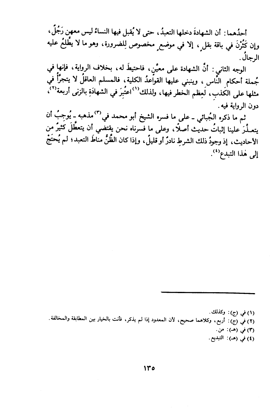 ثُمَّ مَا ذَكَرَهُ الْجُبَّائِيُّ - عَلَى مَا فَسَّرَهُ الشَّيْخُ أَبُو مُحَمَّدٍ فِي مَذْهَبِهِ - يُوجِبُ أَنْ يَتَعَذَّرَ عَلَيْنَا إِثْبَاتُ حَدِيثٍ أَصْلًا، وَعَلَى مَا فَسَّرْنَاهُ نَحْنُ يَقْتَضِي أَنْ يَتَعَطَّلَ كَثِيرٌ مِنَ الْأَحَادِيثِ، إِذْ وُجُودُ ذَلِكَ الشَّرْطِ نَادِرٌ أَوْ قَلِيلٌ، وَإِذَا كَانَ الظَّنُّ مَنَاطَ التَّعَبُّدِ، لَمْ يُحْتَجْ إِلَى هَذَا التَّبَدُّعِ.