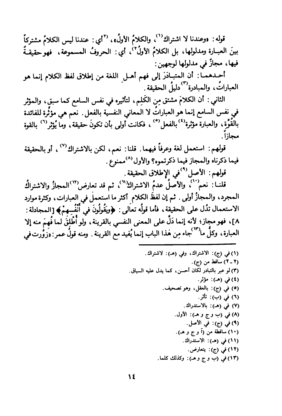 قُلْنَا: نَعَمْ، وَالْأَصْلُ عَدَمُ الِاشْتِرَاكِ، ثُمَّ قَدْ تَعَارَضَ الْمَجَازُ وَالِاشْتِرَاكُ الْمُجَرَّدُ، وَالْمَجَازُ أَوْلَى. ثُمَّ إِنَّ لَفْظَ الْكَلَامِ أَكْثَرُ مَا اسْتُعْمِلَ فِي الْعِبَارَاتِ، وَكَثْرَةُ مَوَارِدِ الِاسْتِعْمَالِ تَدُلُّ عَلَى الْحَقِيقَةِ ; فَأَمَّا قَوْلُهُ تَعَالَى: {وَيَقُولُونَ فِي أَنْفُسِهِمْ} [الْمُجَادَلَةِ: 8] ; فَهُوَ مَجَازٌ ; لِأَنَّهُ إِنَّمَا دَلَّ عَلَى الْمَعْنَى النَّفْسِيِّ بِالْقَرِينَةِ، وَلَوْ أُطْلِقَ لَمَا فُهِمَ مِنْهُ إِلَّا الْعِبَارَةُ، وَكُلُّ مَا جَاءَ مِنْ هَذَا الْبَابِ إِنَّمَا يُفِيدُ مَعَ الْقَرِينَةِ، وَمِنْهُ قَوْلُ عُمَرَ: «زَوَّرْتُ فِي