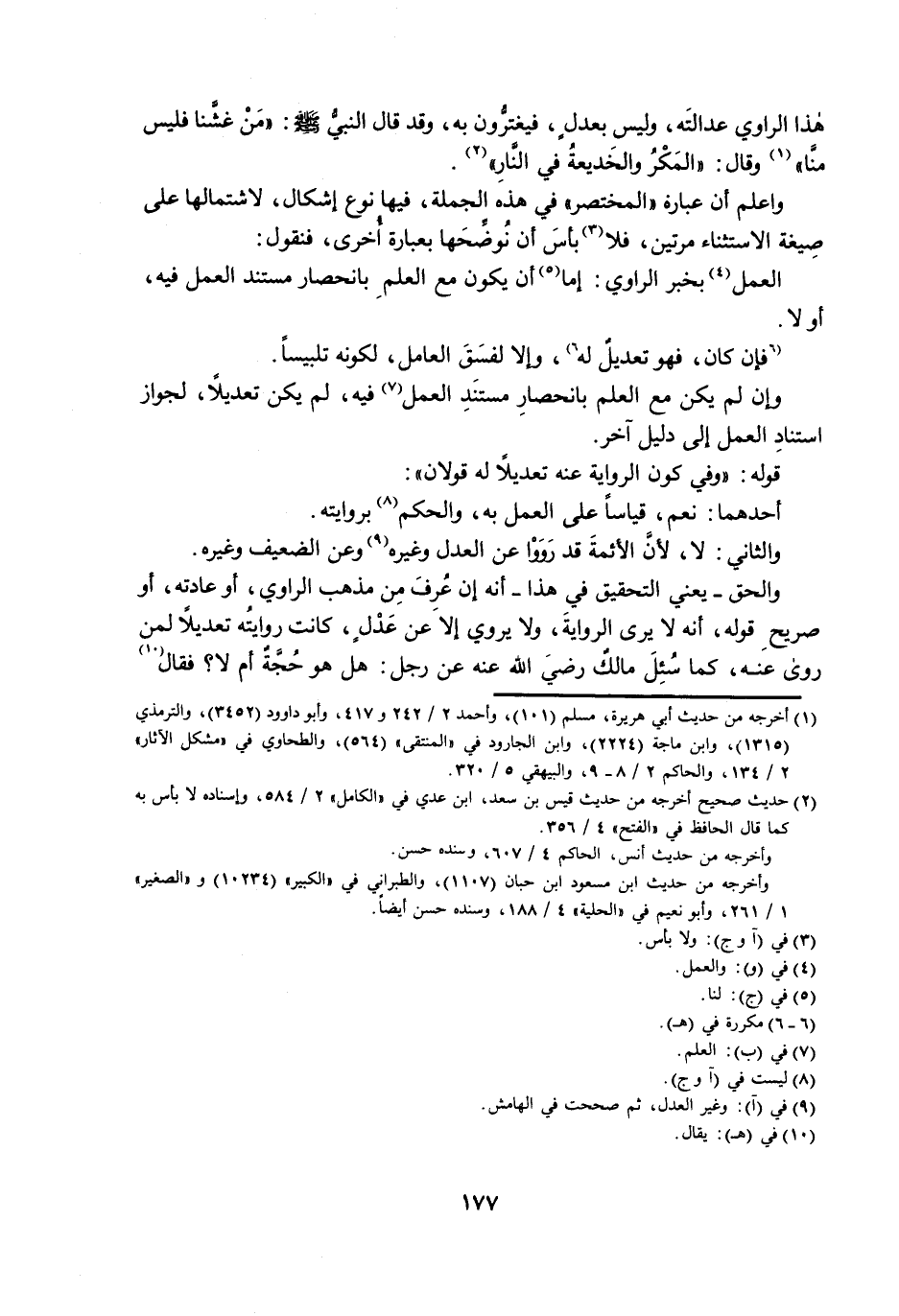 هَذَا الرَّاوِي عَدَالَتَهُ، وَلَيْسَ بِعَدْلٍ؛ فَيَغْتَرُّونَ بِهِ، وَقَدْ قَالَ النَّبِيُّ صَلَّى اللَّهُ عَلَيْهِ وَسَلَّمَ: مَنْ غَشَّنَا فَلَيْسَ مِنَّا، وَقَالَ: الْمَكْرُ وَالْخَدِيعَةُ فِي النَّارِ. وَاعْلَمْ أَنَّ عِبَارَةَ «الْمُخْتَصَرِ» فِي هَذِهِ الْجُمْلَةِ؛ فِيهَا نَوْعُ إِشْكَالٍ، لِاشْتِمَالِهَا عَلَى صِيغَةِ الِاسْتِثْنَاءِ مَرَّتَيْنِ؛ فَلَا بَأْسَ أَنْ نُوَضِّحَهَا بِعِبَارَةٍ أُخْرَى؛ فَنَقُولُ: