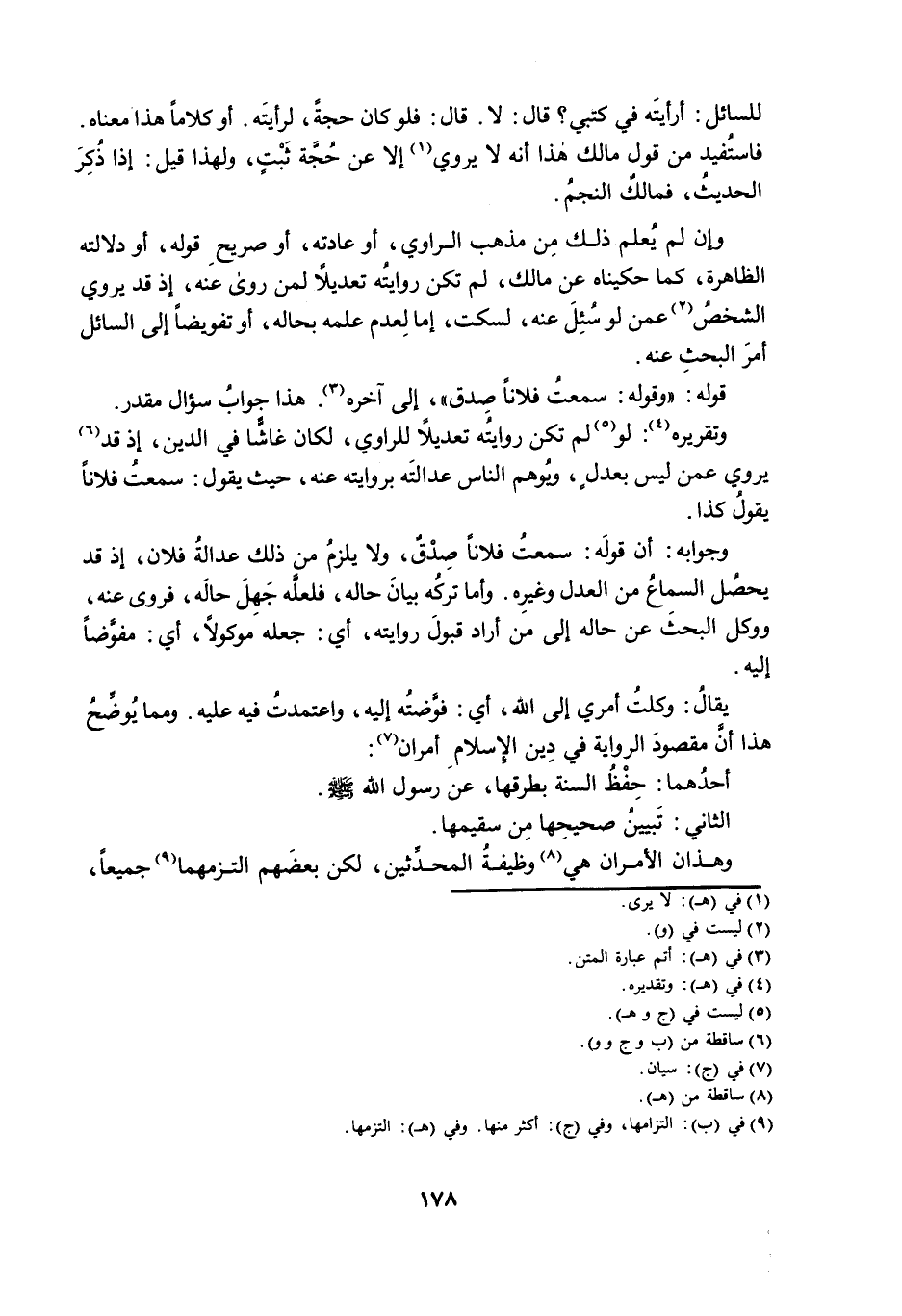 أَحَدُهُمَا: حِفْظُ السُّنَّةِ بِطُرُقِهَا، عَنْ رَسُولِ اللَّهِ صَلَّى اللَّهُ عَلَيْهِ وَسَلَّمَ.