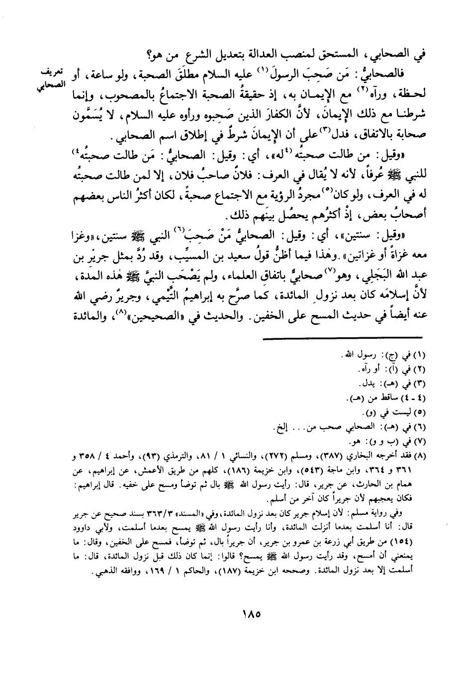 فِي الصَّحَابِيِّ، الْمُسْتَحِقِّ لِمَنْصِبِ الْعَدَالَةِ بِتَعْدِيلِ الشَّرْعِ مَنْ هُوَ؟