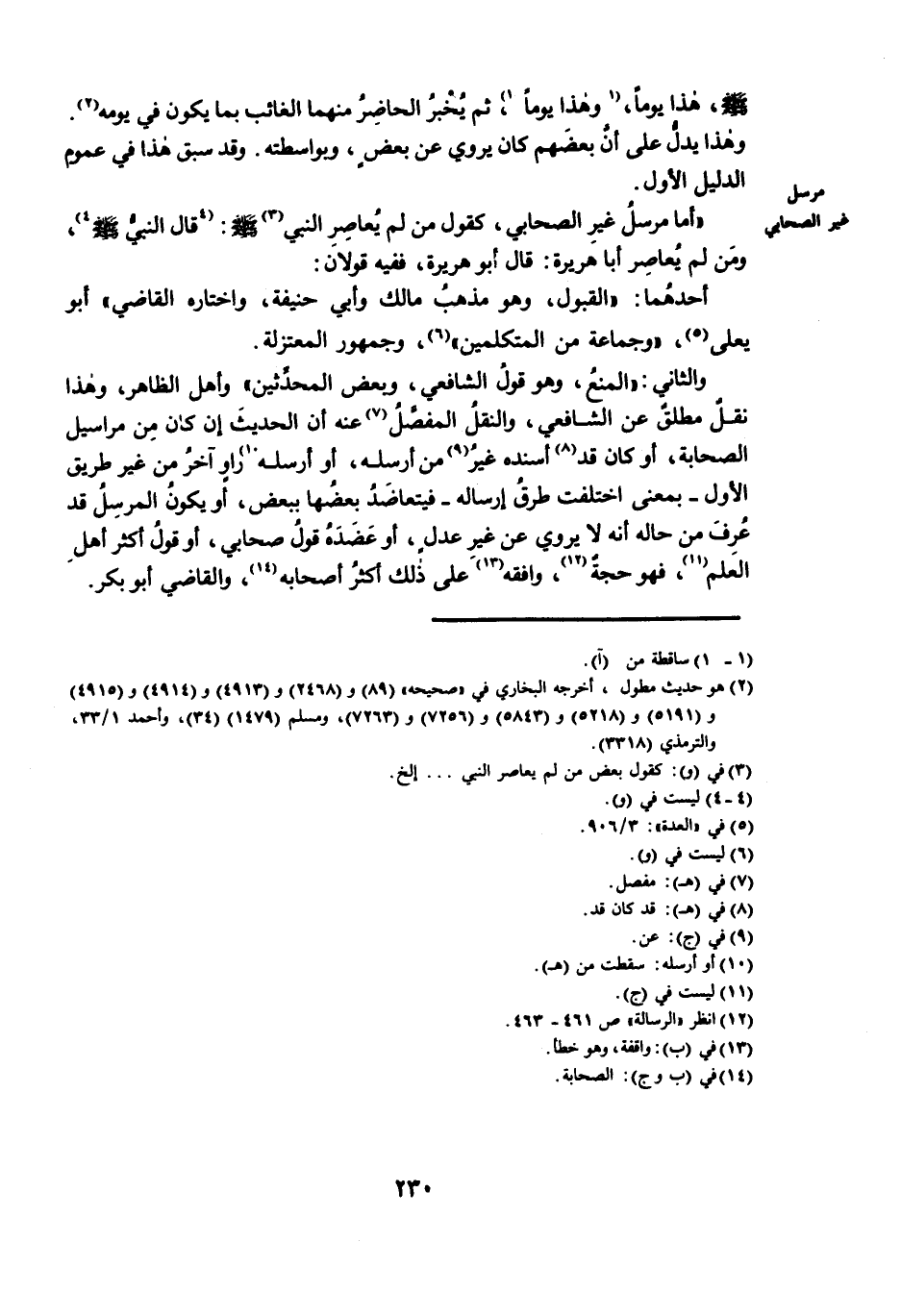 «أَمَّا مُرْسَلُ غَيْرِ الصَّحَابِيِّ، كَقَوْلِ مَنْ لَمْ يُعَاصِرِ النَّبِيَّ صَلَّى اللَّهُ عَلَيْهِ وَسَلَّمَ: قَالَ النَّبِيُّ، صَلَّى اللَّهُ عَلَيْهِ وَسَلَّمَ، وَمَنْ لَمْ يُعَاصِرْ أَبَا هُرَيْرَةَ: قَالَ أَبُو هُرَيْرَةَ» ; فَفِيهِ قَوْلَانِ: