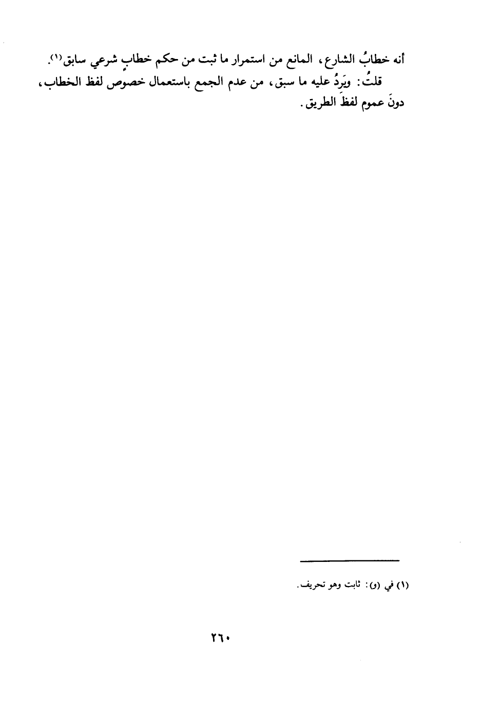 قُلْتُ: وَيَرِدُ عَلَيْهِ مَا سَبَقَ، مِنْ عَدَمِ الْجَمْعِ بِاسْتِعْمَالِ خُصُوصِ لَفْظِ الْخِطَابِ، دُونَ عُمُومِ لَفْظِ الطَّرِيقِ.