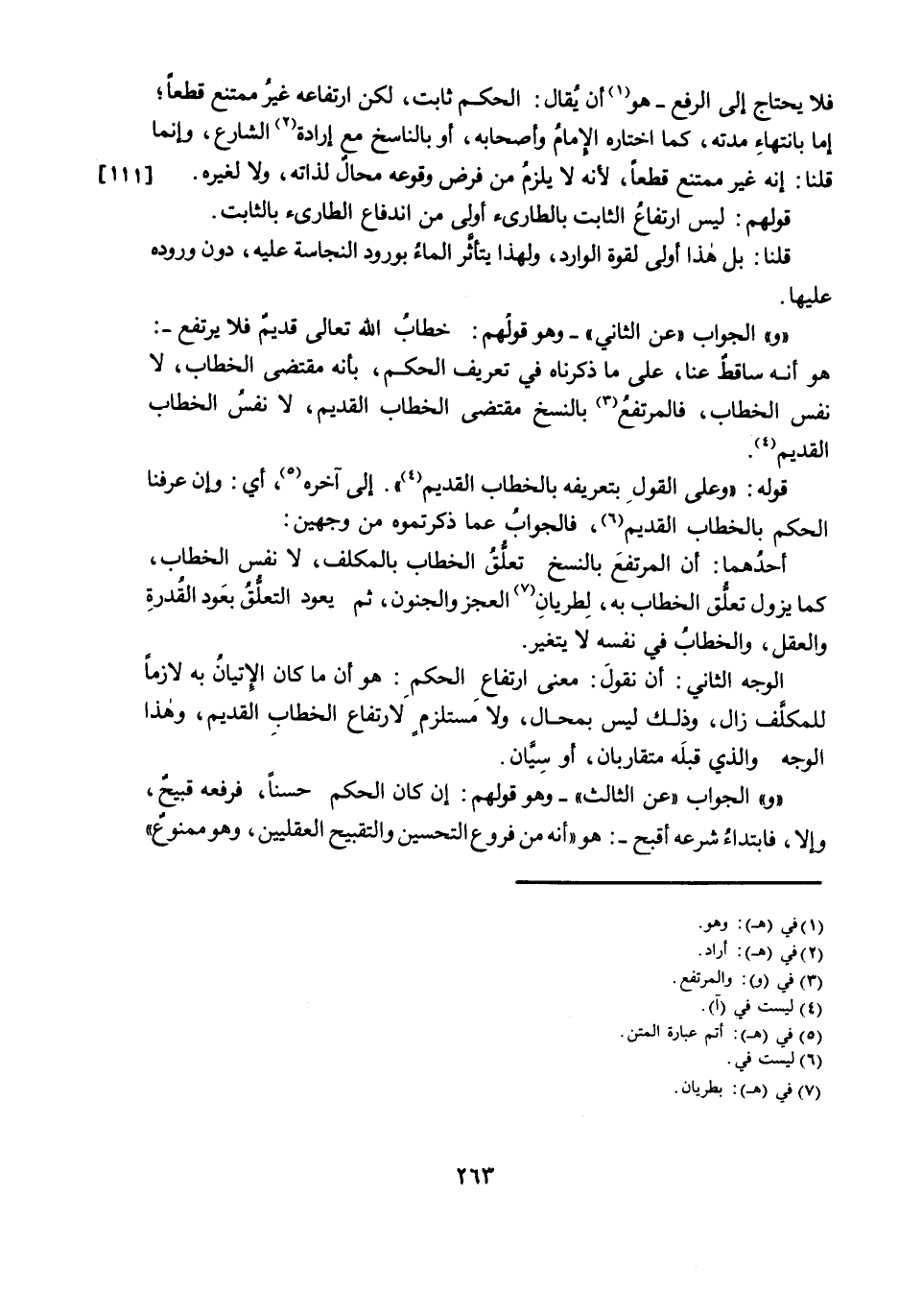 وَالْجَوَابُ «عَنِ الثَّالِثِ» - وَهُوَ قَوْلُهُمْ: إِنْ كَانَ الْحُكْمُ حَسَنًا ; فَرَفْعُهُ قَبِيحٌ، وَإِلَّا ; فَابْتِدَاءُ شَرْعِهِ أَقْبَحُ -: هُوَ «أَنَّهُ مِنْ فُرُوعِ التَّحْسِينِ وَالتَّقْبِيحِ الْعَقْلِيَّيْنِ، وَهُوَ مَمْنُوعٌ»