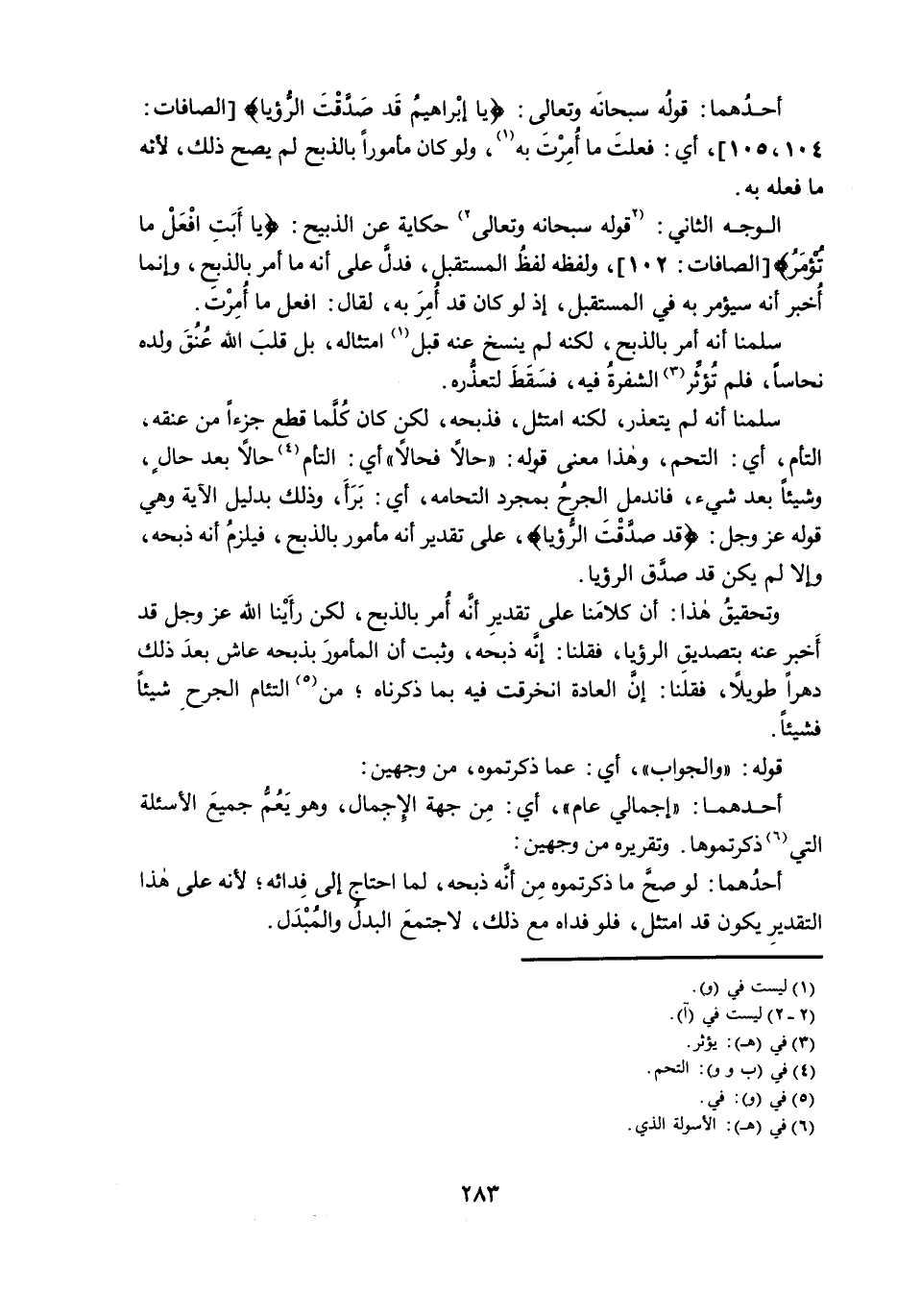 سَلَّمْنَا أَنَّهُ لَمْ يَتَعَذَّرْ، لَكِنَّهُ امْتَثَلَ ; فَذَبَحَهُ، لَكِنْ كَانَ كُلَّمَا قَطَعَ جُزْءًا مِنْ عُنُقِهِ، الْتَأَمَ، أَيِ: الْتَحَمَ، وَهَذَا مَعْنَى قَوْلِهِ: حَالًا فَحَالًا، أَيِ: الْتَأَمَ حَالًا بَعْدَ حَالٍ، وَشَيْئًا بَعْدَ شَيْءٍ ; فَانْدَمَلَ الْجُرْحُ بِمُجَرَّدِ الْتِحَامِهِ، أَيْ: بَرَأَ وَذَلِكَ بِدَلِيلِ الْآيَةِ وَهِيَ قَوْلُهُ عَزَّ وَجَلَّ: {قَدْ صَدَّقْتَ الرُّؤْيَا} ، عَلَى تَقْدِيرِ أَنَّهُ مَأْمُورٌ بِالذَّبْحِ ; فَيَلْزَمُ أَنَّهُ ذَبَحَهُ، وَإِلَّا لَمْ يَكُنْ قَدْ صَدَّقَ الرُّؤْيَا.
