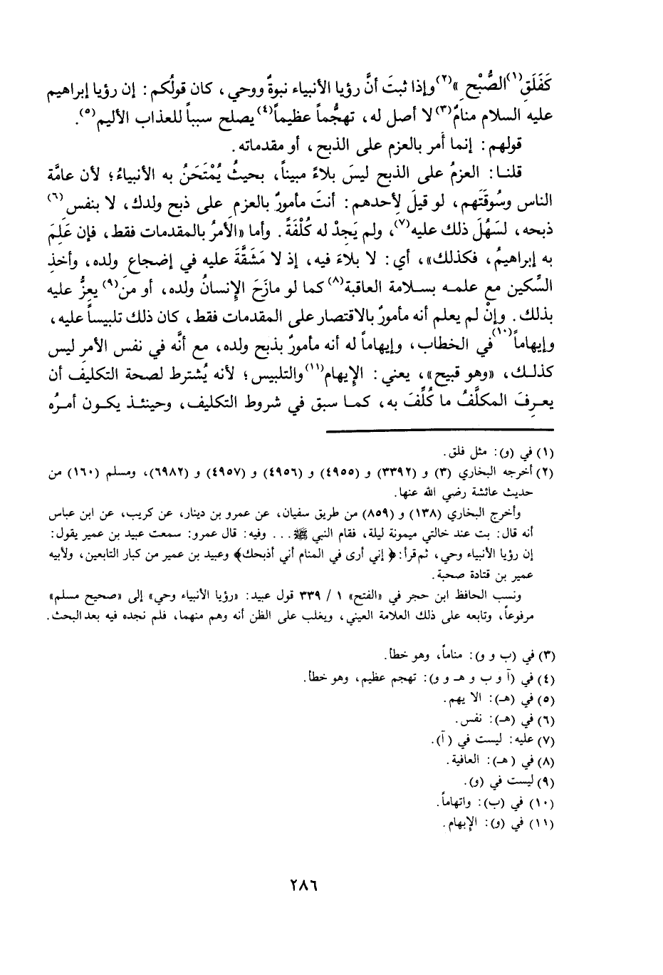 كَفَلَقِ الصُّبْحِ، وَإِذَا ثَبَتَ أَنَّ رُؤْيَا الْأَنْبِيَاءِ نُبُوَّةٌ وَوَحْيٌ، كَانَ قَوْلُكُمْ: إِنَّ رُؤْيَا إِبْرَاهِيمَ عَلَيْهِ السَّلَامُ مَنَامٌ لَا أَصْلَ لَهُ، تَهَجُّمًا عَظِيمًا يَصْلُحُ سَبَبًا لِلْعَذَابِ الْأَلِيمِ.