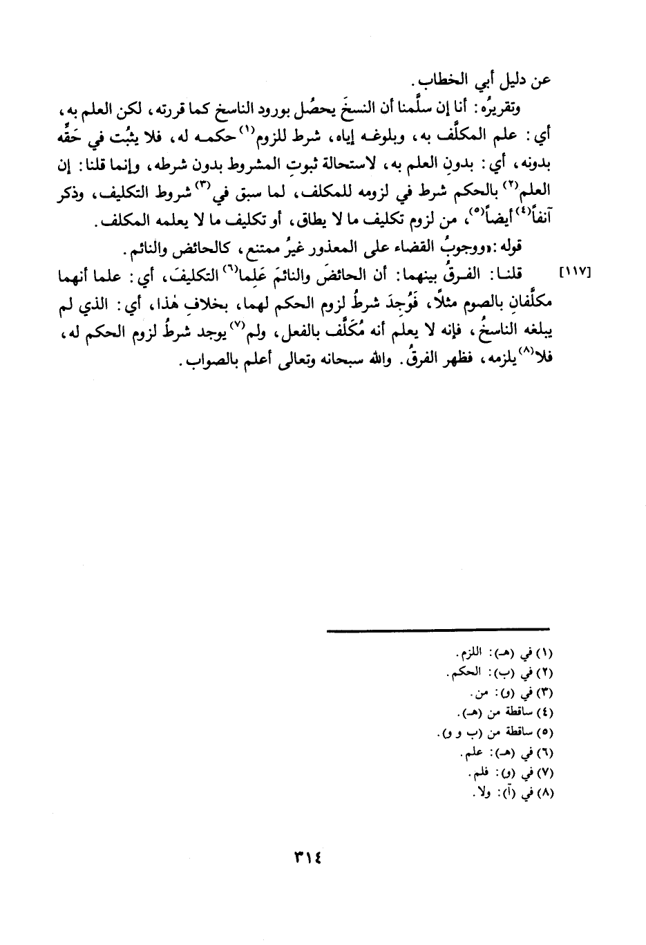 وَتَقْرِيرُهُ: أَنَّا إِنْ سَلَّمْنَا أَنَّ النَّسْخَ يَحْصُلُ بِوُرُودِ النَّاسِخِ كَمَا قَرَّرْتُهُ، لَكِنَّ الْعِلْمَ بِهِ، أَيْ: عِلْمَ الْمُكَلَّفِ بِهِ، وَبُلُوغَهُ إِيَّاهُ، شَرْطٌ لِلُزُومِ حُكْمِهِ لَهُ ; فَلَا يَثْبُتُ فِي حَقِّهِ بِدُونِهِ، أَيْ: بِدُونِ الْعِلْمِ بِهِ، لِاسْتِحَالَةِ ثُبُوتِ الْمَشْرُوطِ بِدُونِ شَرْطِهِ، وَإِنَّمَا قُلْنَا: إِنَّ الْعِلْمَ بِالْحُكْمِ شَرْطٌ فِي لُزُومِهِ لِلْمُكَلَّفِ، لِمَا سَبَقَ فِي شُرُوطِ التَّكْلِيفِ، وَذُكِرَ آنِفًا أَيْضًا، مَنْ لُزُومِ تَكْلِيفِ مَا لَا يُطَاقُ، أَوْ تَكْلِيفِ مَا لَا يَعْلَمُهُ الْمُكَلَّفُ.