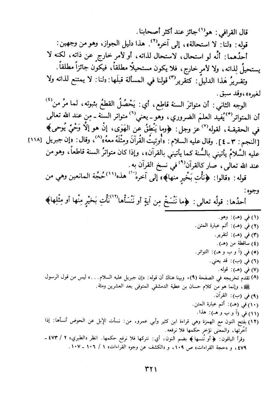 أَحَدُهَا: قَوْلُهُ تَعَالَى: " {مَا نَنْسَخْ مِنْ آيَةٍ أَوْ نُنْسِهَا نَأْتِ بِخَيْرٍ مِنْهَا أَوْ مِثْلِهَا}