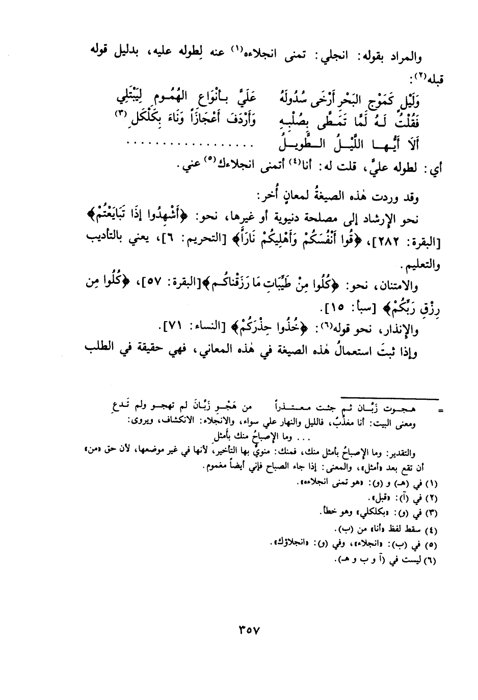 وَالْمُرَادُ بِقَوْلِهِ: انْجَلِي: تَمَنَّى انْجِلَاءَهُ عَنْهُ لِطُولِهِ عَلَيْهِ، بِدَلِيلِ قَوْلِهِ قَبْلَهُ: