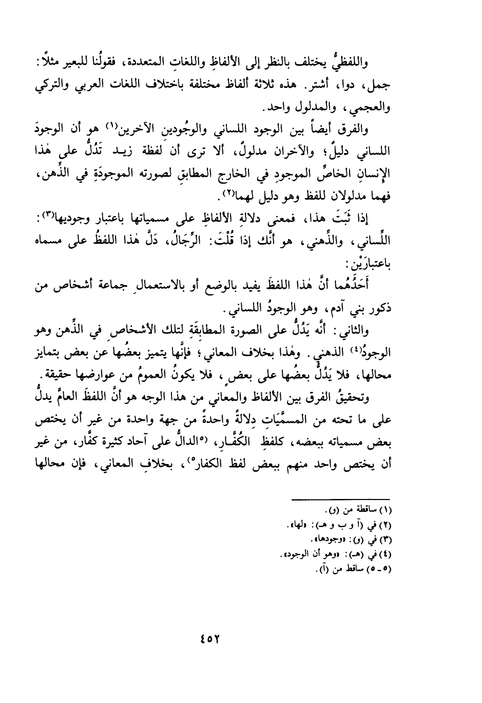 وَالْفَرْقُ أَيْضًا بَيْنَ الْوُجُودِ اللِّسَانِيِّ والْوُجُودَيْنِ الْآخَرَيْنِ هُوَ أَنَّ الْوُجُودَ اللِّسَانِيَّ دَلِيلٌ، وَالْآخَرَانِ مَدْلُولٌ، أَلَا تَرَى أَنَّ لَفْظَةَ زَيْدٍ تَدُلُّ عَلَى هَذَا الْإِنْسَانِ الْخَاصِّ الْمَوْجُودِ فِي الْخَارِجِ الْمُطَابِقِ لِصُورَتِهِ الْمَوْجُودَةِ فِي الذِّهْنِ ; فَهُمَا مَدْلُولَانِ لِلَّفْظِ وَهُوَ دَلِيلٌ لَهُمَا.