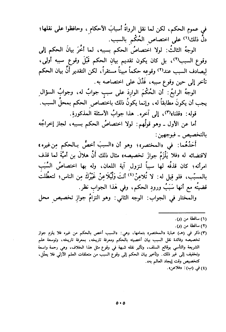 فِي عُمُومِ الْحُكْمِ، لَكِنْ لَمَّا نَقَلَ الرُّوَاةُ أَسْبَابَ الْأَحْكَامِ، وَحَافَظُوا عَلَى نَقْلِهَا، دَلَّ ذَلِكَ عَلَى اخْتِصَاصِ الْحُكْمِ بِالسَّبَبِ.