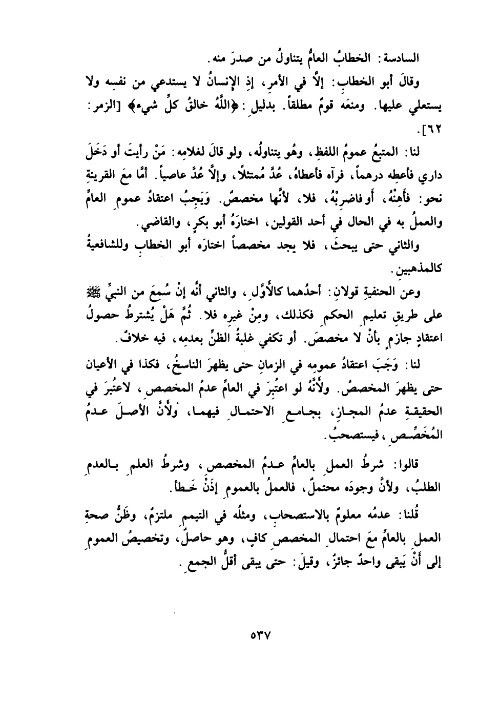 السَّادِسَةُ: الْخِطَابُ الْعَامُّ يَتَنَاوَلُ مَنْ صَدَرَ مِنْهُ.