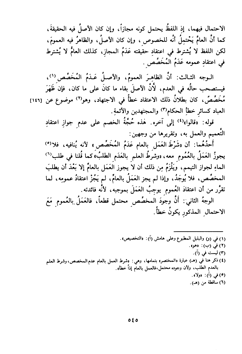 قَوْلُهُ: «قَالُوا» ، إِلَى آخِرِهِ. هَذِهِ حُجَّةُ الْخَصْمِ عَلَى عَدَمِ جَوَازِ اعْتِقَادِ التَّعْمِيمِ وَالْعَمَلِ بِهِ، وَتَقْرِيرُهَا مِنْ وَجْهَيْنِ: