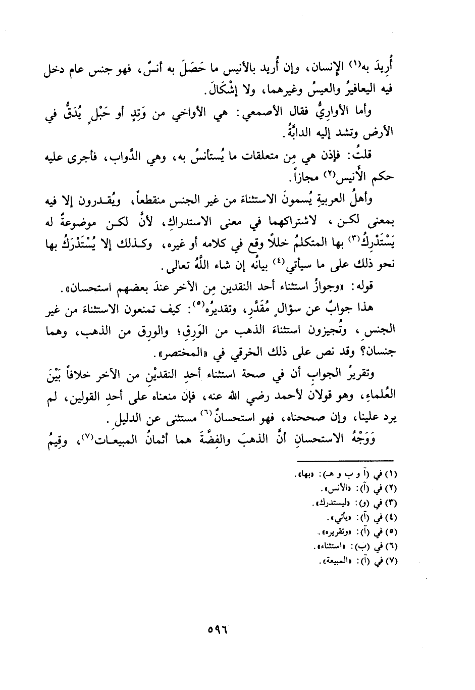 وَتَقْرِيرُ الْجَوَابِ أَنَّ فِي صِحَّةِ اسْتِثْنَاءِ أَحَدِ النَّقْدَيْنِ مِنَ الْآخَرِ خِلَافًا بَيْنَ الْعُلَمَاءِ، وَهُوَ قَوْلَانِ لِأَحْمَدَ رَضِيَ اللَّهُ عَنْهُ، فَإِنْ مَنَعْنَاهُ عَلَى أَحَدِ الْقَوْلَيْنِ، لَمْ يُرَدَّ عَلَيْنَا، وَإِنْ صَحَّحْنَاهُ ; فَهُوَ اسْتِحْسَانٌ مُسْتَثْنًى عَنِ الدَّلِيلِ.