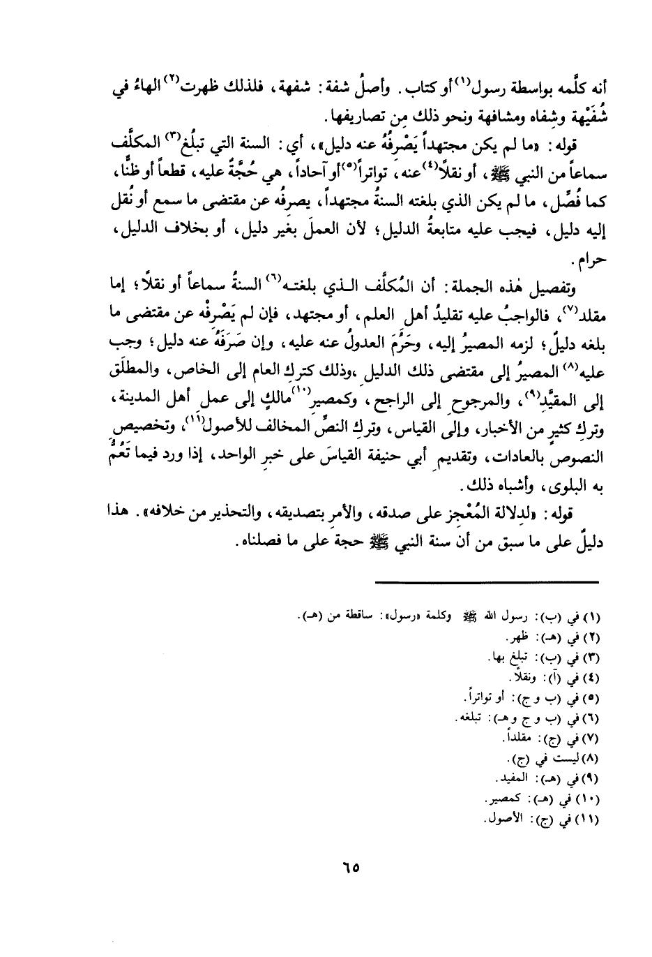 قَوْلُهُ: «لِدَلَالَةِ الْمُعْجِزِ عَلَى صِدْقِهِ، وَالْأَمْرِ بِتَصْدِيقِهِ، وَالتَّحْذِيرِ مِنْ خِلَافِهِ» . هَذَا دَلِيلٌ عَلَى مَا سَبَقَ مِنْ أَنَّ سُنَّةَ النَّبِيِّ - صَلَّى اللَّهُ عَلَيْهِ وَسَلَّمَ - حُجَّةٌ عَلَى مَا فَصَّلْنَاهُ.