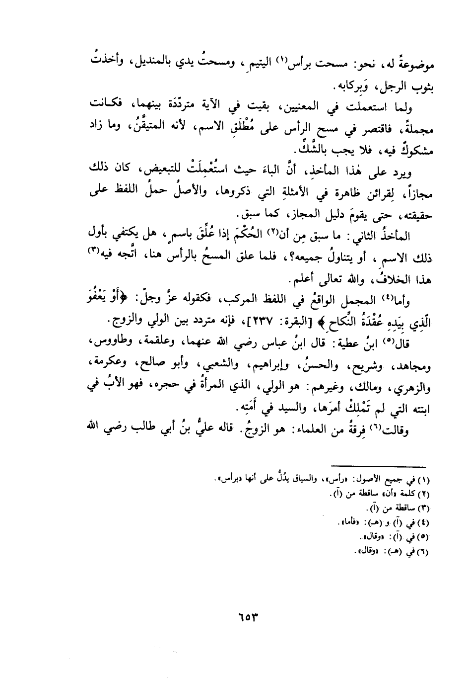 وَلَمَّا اسْتُعْمِلَتْ فِي الْمَعْنَيَيْنِ، بَقِيَتْ فِي الْآيَةِ مُتَرَدِّدَةً بَيْنَهُمَا ; فَكَانَتْ مُجْمَلَةً ; فَاقْتُصِرَ فِي مَسْحِ الرَّأْسِ عَلَى مُطْلَقِ الِاسْمِ ; لِأَنَّهُ الْمُتَيَقَّنُ، وَمَا زَادَ مَشْكُوكٌ فِيهِ ; فَلَا يَجِبُ بِالشَّكِّ.