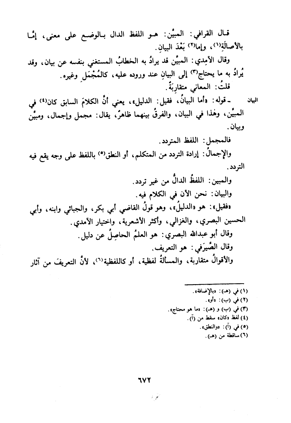 «فَقِيلَ» : هُوَ «الدَّلِيلُ» ، وَهُوَ قَوْلُ الْقَاضِي أَبِي بَكْرٍ، وَالْجُبَّائِيِّ وَابْنِهِ، وَأَبِي الْحُسَيْنِ الْبَصْرِيِّ، وَالْغَزَالِيِّ، وَأَكْثَرِ الْأَشْعَرِيَّةِ، وَاخْتِيَارُ الْآمِدِيِّ.