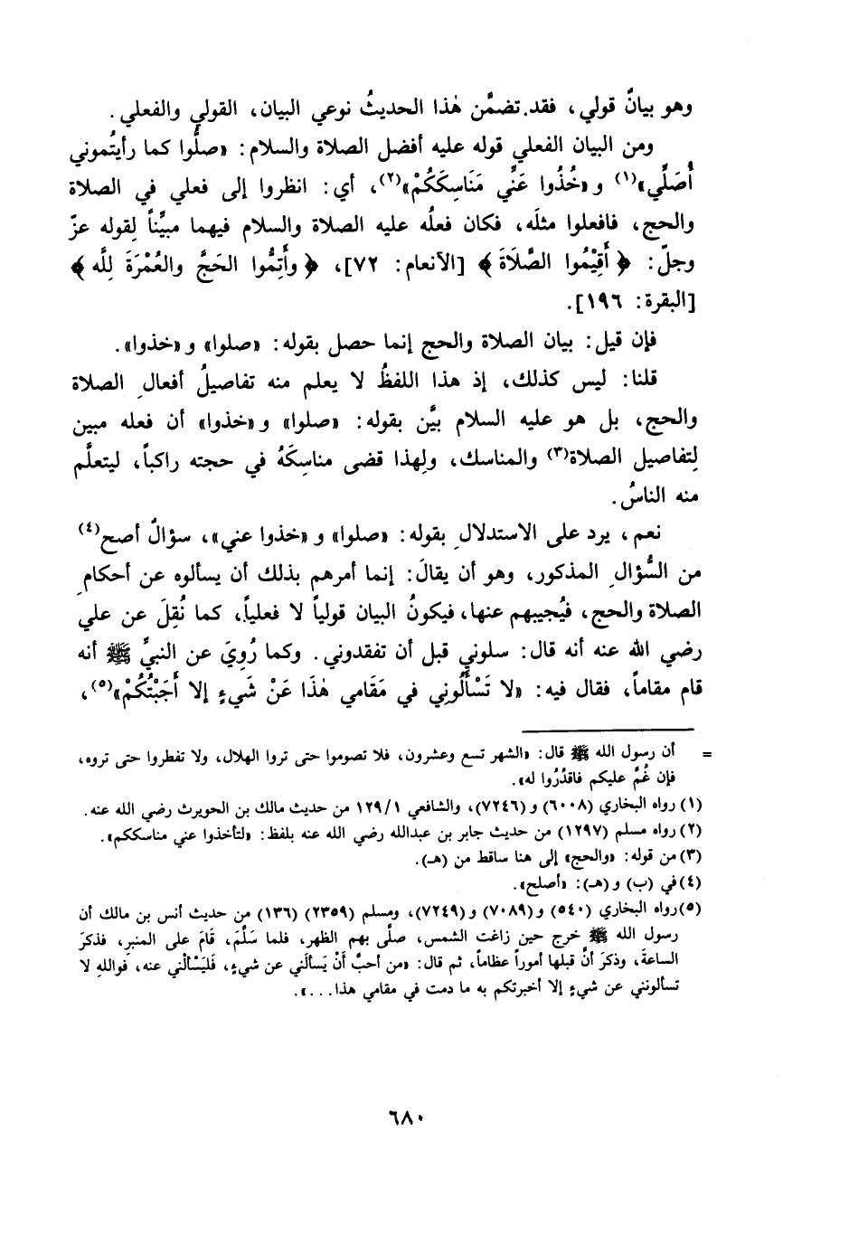 فَإِنْ قِيلَ: بَيَانُ الصَّلَاةِ وَالْحَجِّ إِنَّمَا حَصَلَ بِقَوْلِهِ: صَلُّوا، وَ: خُذُوا.