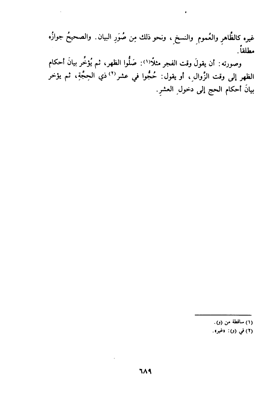 غَيْرِهِ كَالظَّاهِرِ وَالْعُمُومِ وَالنَّسْخِ، وَنَحْوِ ذَلِكَ مِنْ صُوَرِ الْبَيَانِ. وَالصَّحِيحُ جَوَازُهُ مُطْلَقًا.