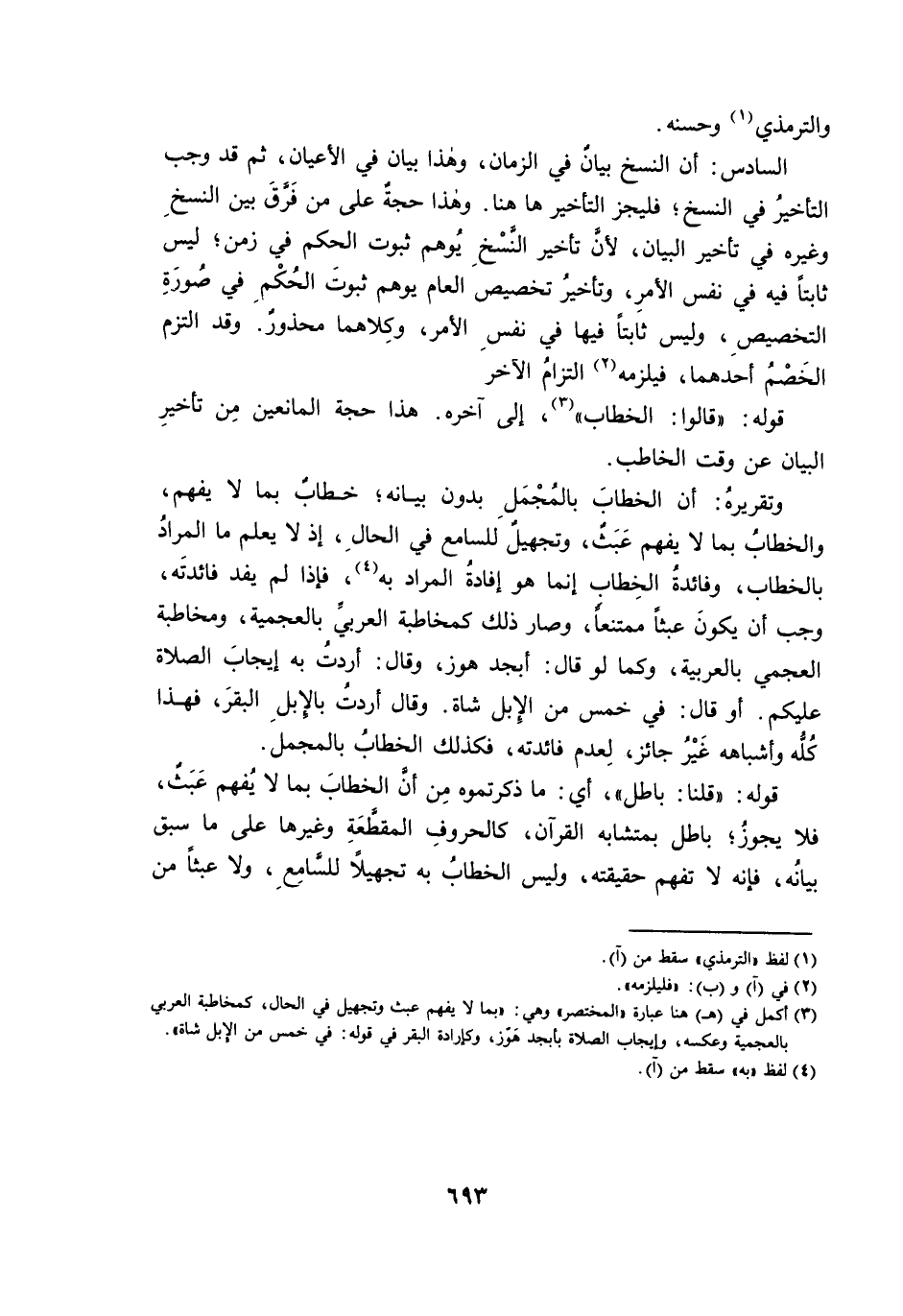 قَوْلُهُ: «قَالُوا: الْخِطَابُ» ، إِلَى آخِرِهِ. هَذَا حُجَّةُ الْمَانِعِينَ مِنْ تَأْخِيرِ الْبَيَانِ عَنْ وَقْتِ الْخِطَابِ.