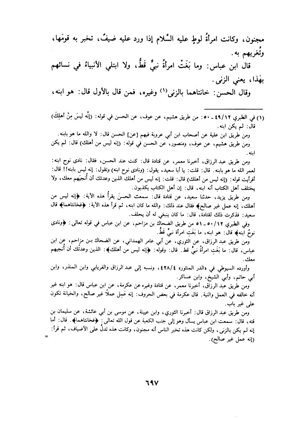 وَقَالَ الْحَسَنُ: خَانَتَاهُمَا بِالزِّنَا وَغَيْرِهِ. فَمَنْ قَالَ بِالْأَوَّلِ قَالَ: هُوَ ابْنُهُ،