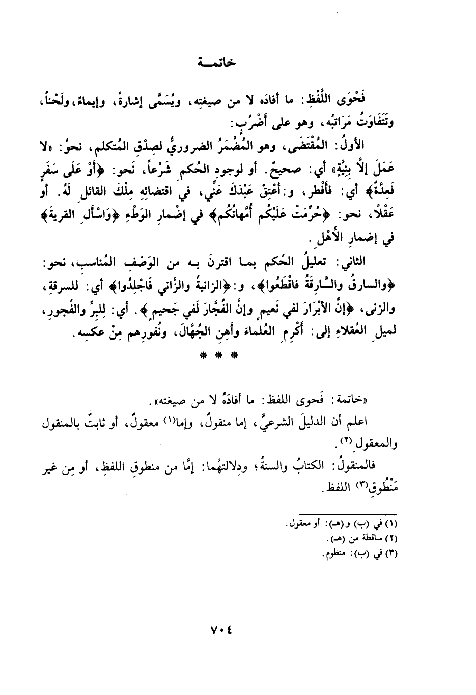 خَاتِمَةٌ: فَحْوَى اللَّفْظِ: مَا أَفَادَهُ لَا مِنْ صِيغَتِهِ ".