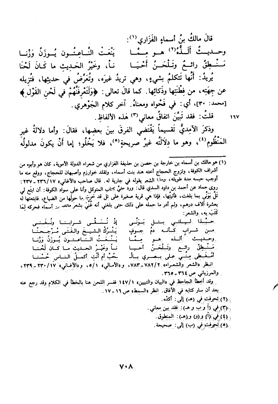 مَنْطِقٌ رَائِعٌ وَتَلْحَنُ أَحْيَا ... نًا، وَخَيْرُ الْحَدِيثِ مَا كَانَ لَحْنَا