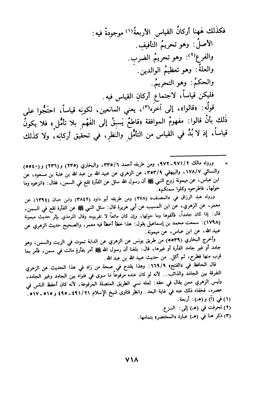 فَكَذَلِكَ هَهُنَا أَرْكَانُ الْقِيَاسِ الْأَرْبَعَةِ مَوْجُودَةٌ فِيهِ: