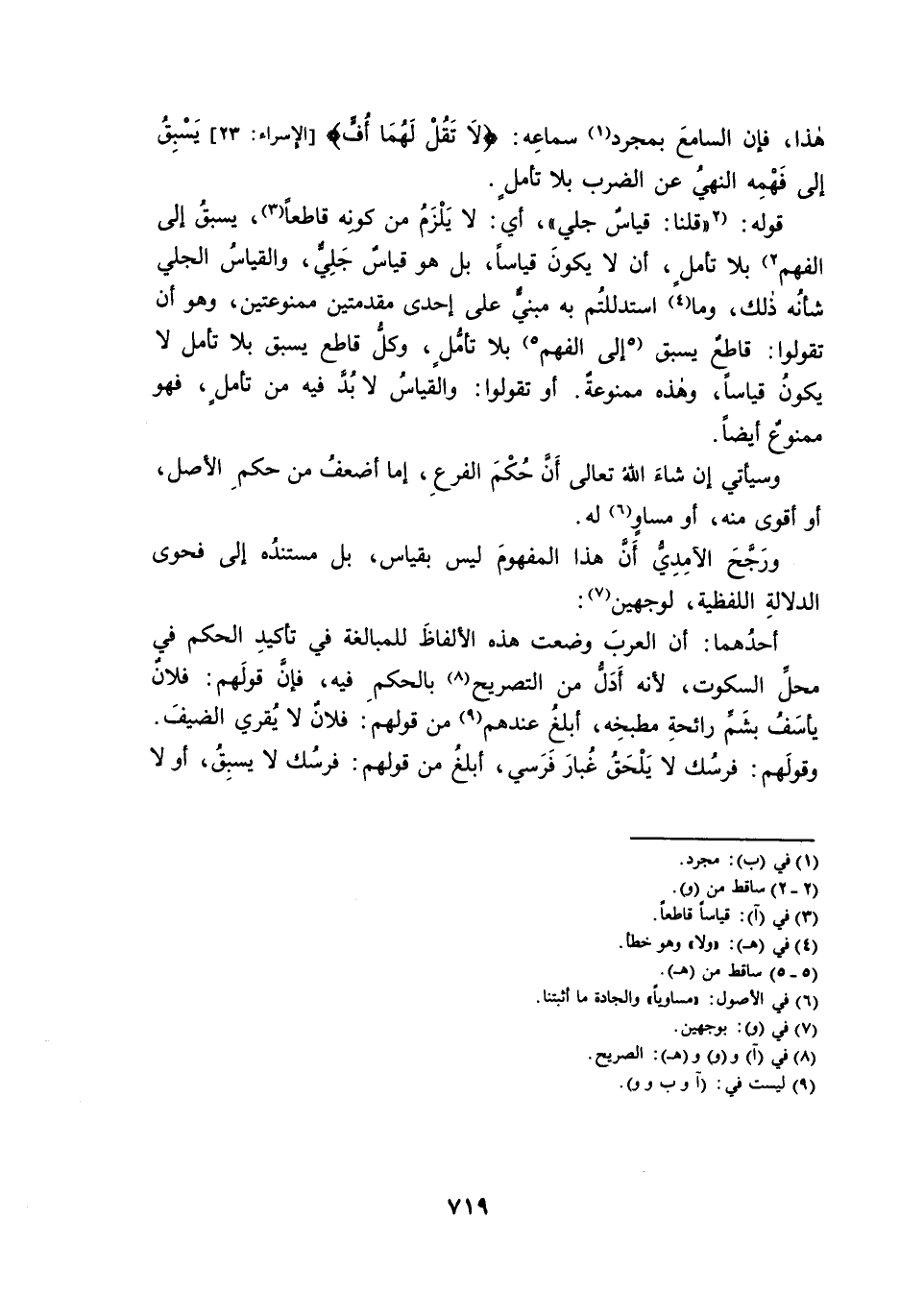 هَذَا، فَإِنَّ السَّامِعَ بِمُجَرَّدِ سَمَاعِهِ: {فَلَا تَقُلْ لَهُمَا أُفٍّ} [الْإِسْرَاءِ: 23] ، يَسْبِقُ إِلَى فَهْمِهِ النَّهْيُ عَنِ الضَّرْبِ بِلَا تَأَمُّلٍ.
