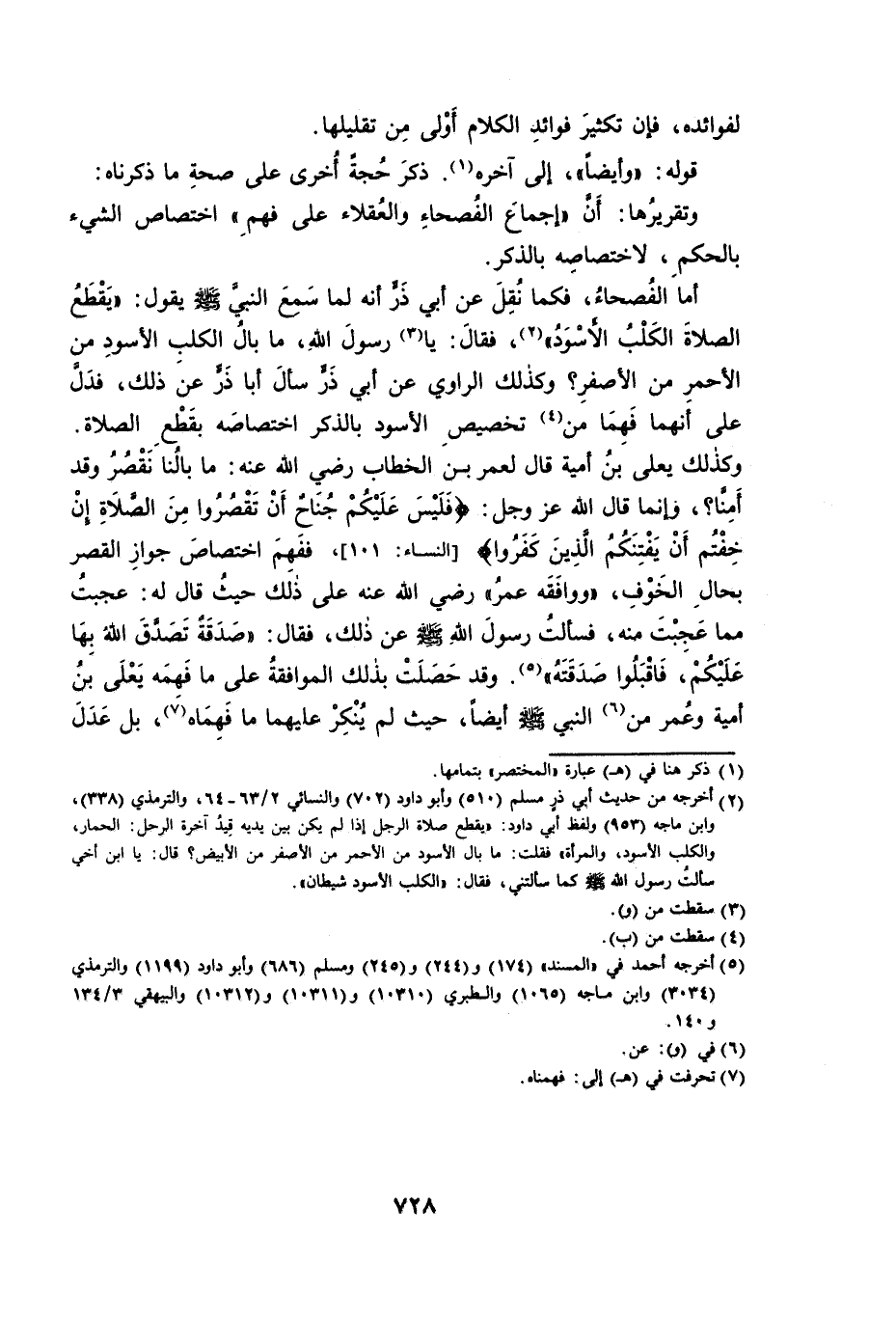 أَمَّا الْفُصَحَاءُ ; فَكَمَا نُقِلَ عَنْ أَبِي ذَرٍّ أَنَّهُ لَمَّا سَمِعَ النَّبِيَّ صَلَّى اللَّهُ عَلَيْهِ وَسَلَّمَ، يَقُولُ: يَقْطَعُ الصَّلَاةَ الْكَلْبُ الْأَسْوَدُ ; فَقَالَ: يَا رَسُولَ اللَّهِ، مَا بَالُ الْكَلْبِ الْأَسْوَدِ مِنَ الْأَحْمَرِ مِنَ الْأَصْفَرِ؟ وَكَذَلِكَ الرَّاوِي عَنْ أَبِي ذَرٍّ سَأَلَ أَبَا ذَرٍّ عَنْ ذَلِكَ ; فَدَلَّ عَلَى أَنَّهُمَا فَهِمَا مِنْ تَخْصِيصِ الْأَسْوَدِ بِالذِّكْرِ اخْتِصَاصَهُ بِقَطْعِ الصَّلَاةِ. وَكَذَلِكَ يَعْلَى بْنُ أُمَيَّةَ قَالَ لِعُمَرَ بْنِ الْخَطَّابِ رَضِيَ اللَّهُ عَنْهُ: مَا بَالُنَا نَقْصُرُ وَقَدْ أَمِنَّا؟ وَإِنَّمَا قَالَ اللَّهُ عَزَّ وَجَلَّ: {فَلَيْسَ عَلَيْكُمْ جُنَاحٌ أَنْ تَقْصُرُوا مِنَ الصَّلَاةِ إِنْ خِفْتُمْ أَنْ يَفْتِنَكُمُ الَّذِينَ كَفَرُوا} [النِّسَاءِ: 101] ; فَفَهِمَ اخْتِصَاصَ جَوَازِ الْقَصْرِ بِحَالِ الْخَوْفِ، وَوَافَقَهُ عُمَرُ رَضِيَ اللَّهُ عَنْهُ عَلَى ذَلِكَ حَيْثُ قَالَ لَهُ: عَجِبْتُ مِمَّا عَجِبْتَ مِنْهُ ; فَسَأَلْتُ رَسُولَ اللَّهِ صَلَّى اللَّهُ عَلَيْهِ وَسَلَّمَ، عَنْ ذَلِكَ ; فَقَالَ: صَدَقَةٌ تَصَدَّقَ اللَّهُ بِهَا عَلَيْكُمْ ; فَاقْبَلُوا صَدَقَتَهُ. وَقَدْ حَصَلَتْ بِذَلِكَ الْمُوَافَقَةُ عَلَى مَا فَهِمَهُ يَعْلَى بْنُ أُمَيَّةَ وَعُمَرُ مِنَ النَّبِيِّ صَلَّى اللَّهُ عَلَيْهِ وَسَلَّمَ، أَيْضًا، حَيْثُ لَمْ يُنْكِرْ عَلَيْهِمَا مَا فَهِمَاهُ، بَلْ عَدَلَ