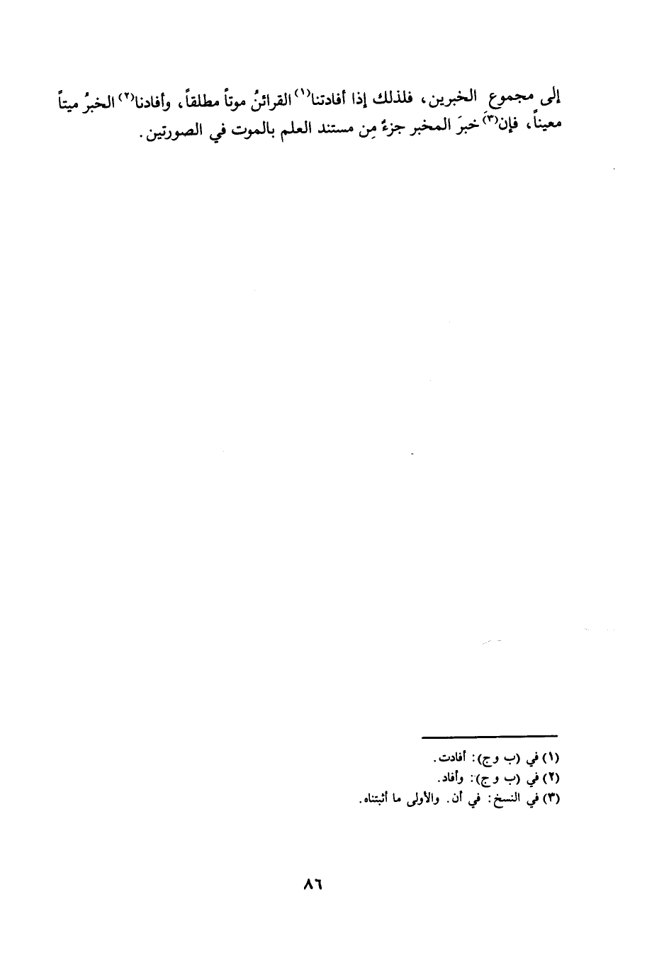 إِلَى مَجْمُوعِ الْخَبَرَيْنِ ; فَلِذَلِكَ إِذَا أَفَادَتْنَا الْقَرَائِنُ مَوْتًا مُطْلَقًا، وَأَفَادَنَا الْخَبَرُ مَيِّتًا مُعَيَّنًا، فَإِنَّ خَبَرَ الْمُخْبِرِ جُزْءٌ مِنْ مُسْتَنَدِ الْعِلْمِ بِالْمَوْتِ فِي الصُّورَتَيْنِ.