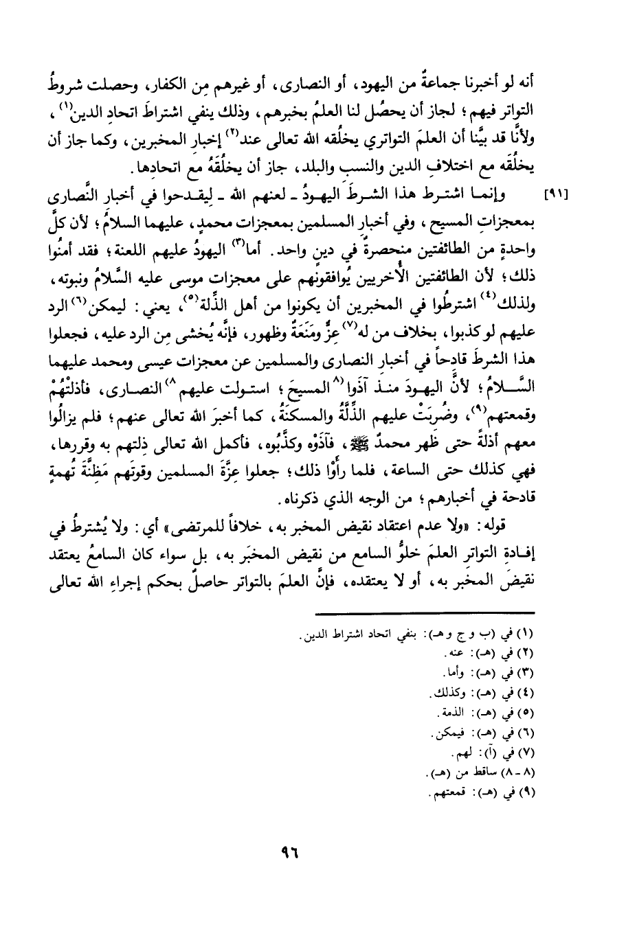 وَإِنَّمَا اشْتَرَطَ هَذَا الشَّرْطَ الْيَهُودُ - لَعَنَهُمُ اللَّهُ - لِيَقْدَحُوا فِي أَخْبَارِ النَّصَارَى بِمُعْجِزَاتِ الْمَسِيحِ، وَفِي أَخْبَارِ الْمُسْلِمِينَ بِمُعْجِزَاتِ مُحَمَّدٍ، عَلَيْهِمَا السَّلَامُ ; لِأَنَّ كُلَّ وَاحِدَةٍ مِنَ الطَّائِفَتَيْنِ مُنْحَصِرَةٌ فِي دِينٍ وَاحِدٍ. أَمَّا الْيَهُودُ عَلَيْهِمُ اللَّعْنَةُ ; فَقَدْ أَمِنُوا ذَلِكَ ; لِأَنَّ الطَّائِفَتَيْنِ الْأُخْرَيَيْنِ يُوَافِقُونَهُمْ فِي الْمُخْبِرِينَ عَلَى مُعْجِزَاتِ مُوسَى عَلَيْهِ السَّلَامُ وَنَبُّوتِهِ، وَلِذَلِكَ اشْتَرَطُوا فِي الْمُخْبِرِينَ أَنْ يَكُونُوا مِنْ أَهْلِ الذِّلَّةِ، يَعْنِي: لِيُمْكِنَ الرَّدُّ عَلَيْهِمْ لَوْ كَذَّبُوا، بِخِلَافِ مَنْ لَهُ عِزٌّ وَمَنَعَةٌ وَظُهُورٌ ; فَإِنَّهُ يُخْشَى مِنَ الرَّدِّ عَلَيْهِ ; فَجَعَلُوا هَذَا الشَّرْطَ قَادِحًا فِي أَخْبَارِ النَّصَارَى وَالْمُسْلِمِينَ عَنْ مُعْجِزَاتِ عِيسَى وَمُحَمَّدٍ عَلَيْهِمَا السَّلَامُ ; لِأَنَّ الْيَهُودَ مُنْذُ آذَوُا الْمَسِيحَ، اسْتَوْلَتْ عَلَيْهِمُ النَّصَارَى ; فَأَذَلَّتْهُمْ وَقَمَعَتْهُمْ، وَضُرِبَتْ عَلَيْهِمُ الذِّلَّةُ وَالْمَسْكَنَةُ، كَمَا أَخْبَرَ اللَّهُ تَعَالَى عَنْهُمْ، فَلَمْ يَزَالُوا مَعَهُمْ أَذِلَّةً حَتَّى ظَهَرَ مُحَمَّدٌ، - صَلَّى اللَّهُ عَلَيْهِ وَسَلَّمَ - ; فَآذَوْهُ وَكَذَّبُوهُ ; فَأَكْمَلَ اللَّهُ تَعَالَى ذِلَّتَهُمْ بِهِ وَقَرَّرَهَا ; فَهِيَ كَذَلِكَ حَتَّى السَّاعَةِ، فَلَمَّا رَأَوْا ذَلِكَ، جَعَلُوا عِزَّةَ الْمُسْلِمِينَ وَقُوَّتَهُمْ مَظِنَّةَ تُهْمَةٍ قَادِحَةٍ فِي أَخْبَارِهِمْ، مِنَ الْوَجْهِ الَّذِي ذَكَرْنَاهُ.