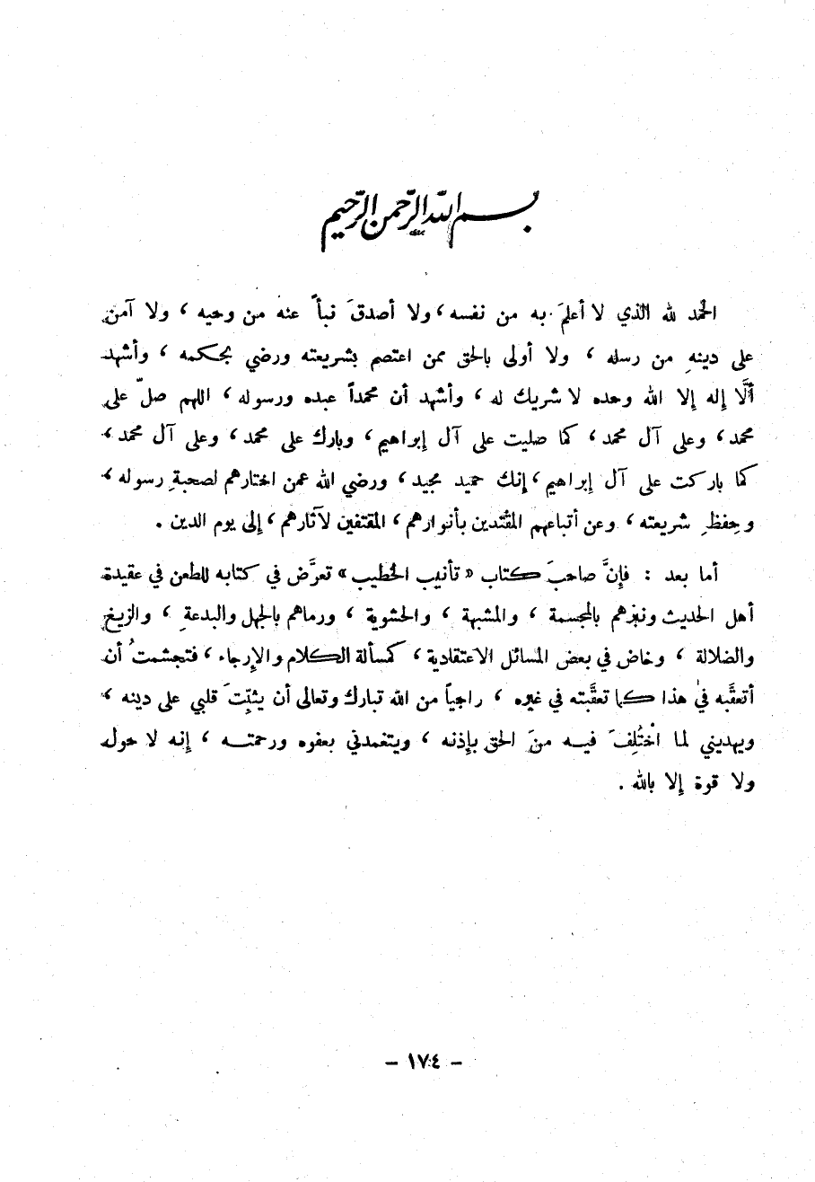 أما بعد فإن صاحب كتاب ((تأنيب الخطيب)) تعرض في كتابه للطعن في عقيدة أهل الحديث ونبزهم بالمجسمة، والمشبه، والحشوية، ورماهم بالجهل والبدعة، والزيغ والضلالة، وخاض في بعض المسائل الاعتقادية، كمسألة الكلام والإرجاء، فتجشمت أن أتعقبه في هذا كما تعقبه في غيره، راجياً من الله تبارك وتعالى أن يثبت قلبي على دينه، ويهديني لما اختلف فيه الحق بإذنه، ويتغمدني بعفوه ورحمته، إنه لا حول ولا قوة إلا بالله.