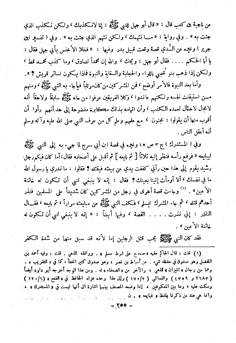عن ناجية بن كعب قال : (( قال أبو جهل للنبي - صلى الله عليه وسلم - : إنا لا نكذبك ، ولكن نكذب الذي جئت به )) . وفي رواية : (( ما نتهمك ولكن نتهم الذي جئت به )) . وفي ( تفسير ابن جرير ) وغيره عن السدي قصة وقعت قبيل بدر وفيها : (( فخلا الأخنس بأبي جهل فقال : يا أبا الحكم ... . فقال أبو جهل : ويحك ، والله أن محمداً لصادق ، وما كذب محمد قط ، ولكن إذا ذهب بنو قصي باللواء والحجابة والسقاية والنبوة فماذا يكون لسائر قريش . )) .