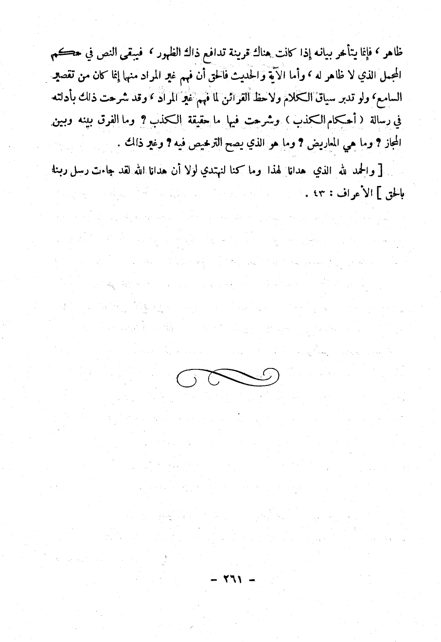 ظاهر ، فإنما يتأخر بيانه إذا كانت هناك قرينة تدافع ذاك الظهور ، فيبقى النص في حكم المجمل الذي لا ظاهر له ، وأما الآية والحديث فالحق أن فهم غير المراد منهما إنما كان من تقصير السامع ، ولو تدبرسياق الكلام ولاحظ القرائن لما فهم غير المراد ، وقد شرحت ذلك بأدلته في رسالة ( أحكام الكذب ) وشرحت فيها ما حقيقة الكذب ؟ وما الفرق بينه وبين المجاز ؟ وما هي المعاريض ؟ وما هو الذي يصح الترخيص فيه ؟ وغير ذلك .