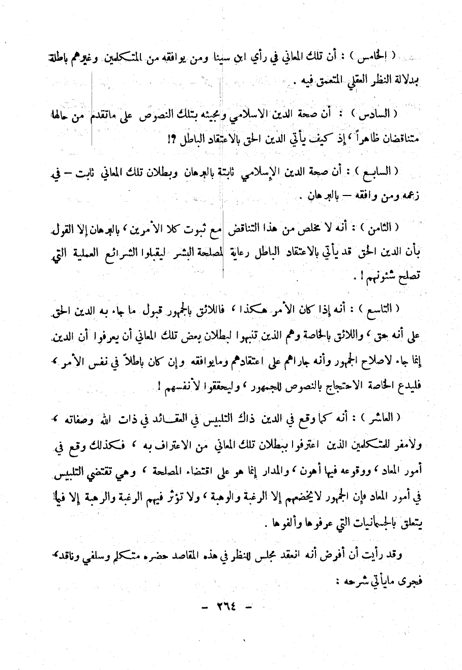 و قد رأيت أن أفرض لأنه انعقد مجلس للنظر في هذه المقاصد حضره متكلم وسلفي وناقد ، فجرى ما يأتي شرحه :