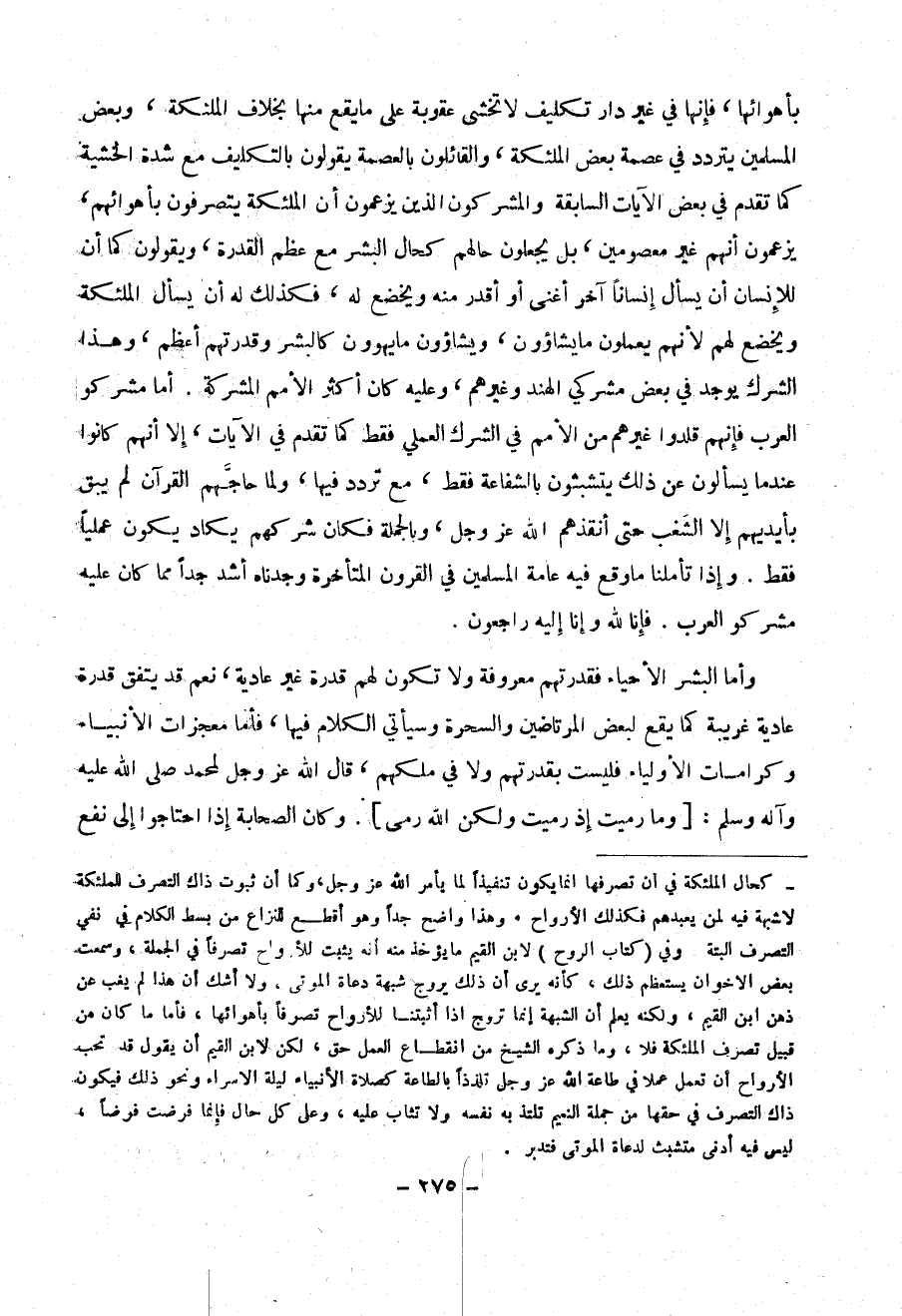 بأهوائها ، فإنها في غير دار تكليف لا تخشى عقوبة علة ما يقع منها بخلاف الملائكة ، وبعض المسلمين يتردد في عصمه بعض الملائكة ، والقائلون بالعصمة يقولون بالتكليف مع شدة الخشية ، كما تقدم في بعض الآيات السابقة والمشركين الذين يزعمون أن الملائكة يتصرفون بأهوائهم ، يزعمون أنهم غير معصومين ، بل يجعلون حالهم كحال البشر مع عظم القدرة ، ويقولون كما أن للإنسان أن يسأل إنساناً آخر أغنى أو أقدر منه ويخضع له ، فكذلك له أن يسأل الملائكة ويخضع لهم لأنهم يعملون ما يشاءون، ويشاءون ما يهوون كالبشر وقدرتهم أعظم وهذا الشرك يوجد في بعض مشركي الهند وغيرهم ، وعليه كان أكثر الأمم المشركة . أما مشركو العرب فإنهم قلدوا غيرهم من الأمم في الشرك العملي فقط كما تقدم في الآيات ، إلا أنهم كانوا عندما يسألون عن ذلك يتشبثون بالشفاعة فقط ، مع تردد فيها ، ولما حاجهم القرآن لم يبق بأيديهم إلا الشغب حتى أنقذهم الله عز وجل ، وبالجملة فكان شركهم يكاد يكون عملياً فقط . وإذا تأملنا ما وقع فيه عامة المسلمين في القرون المتأخرة وجدناه أشد جداً مما كان عليه مشركو العرب . فأنا لله وأنا إليه راجعون .