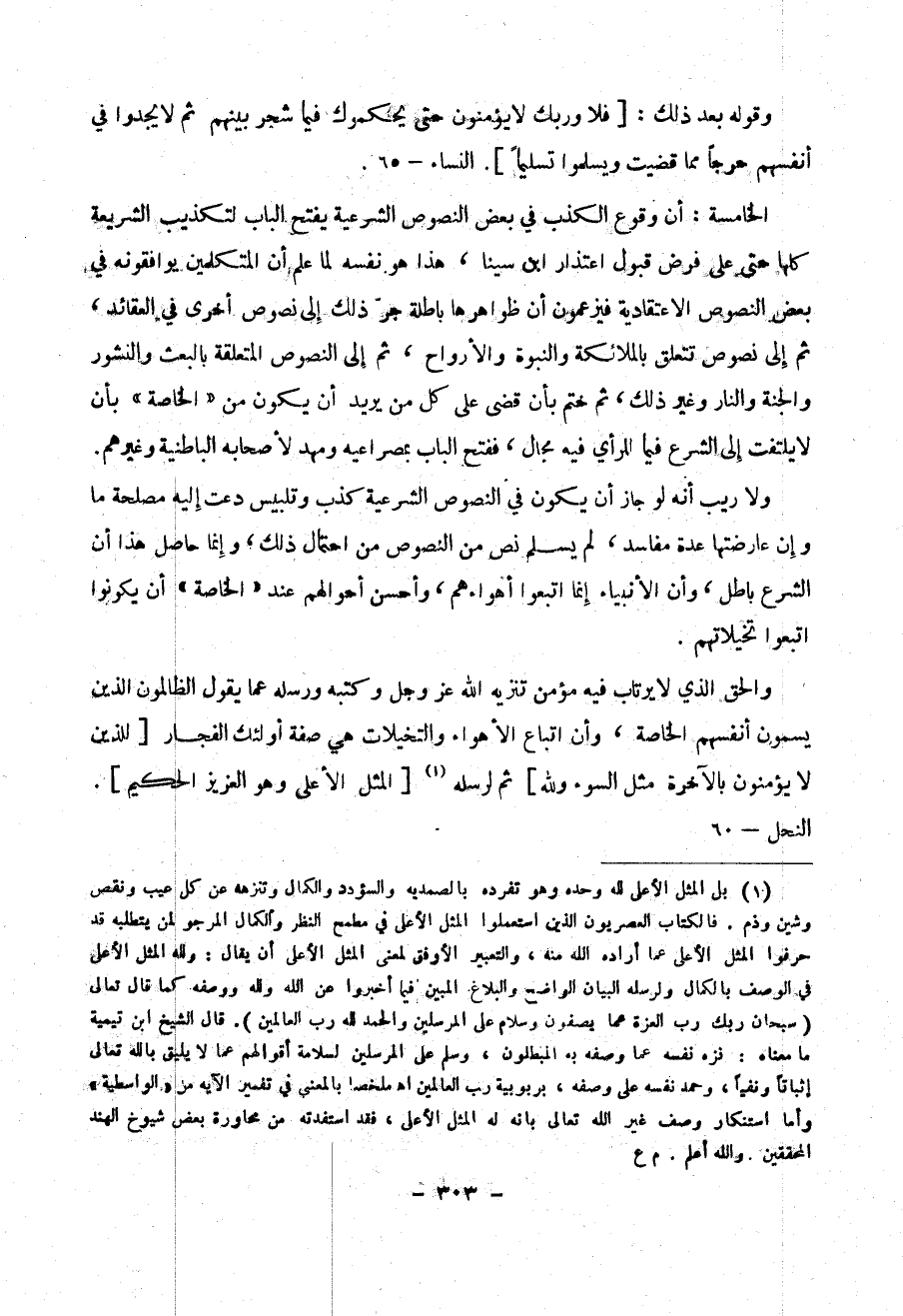 والحق الذي لا يرتاب فيه مؤمن تنزيه الله عز وجل وكتبه ورسله عما يقول الظالمون الذين يسمون أنفسهم الخاصة ، وأن اتباع الأهواء والتخيلات هي صفة أولئك الفجار ، [ لِلَّذِينَ لا يُؤْمِنُونَ بِالْآخِرَةِ مَثَلُ السَّوْءِ وَلِلَّهِ ] ثم لرسله (1) [ الْمَثَلُ الْأَعْلَى وَهُوَ الْعَزِيزُ الْحَكِيمُ ] . النحل - 60 .