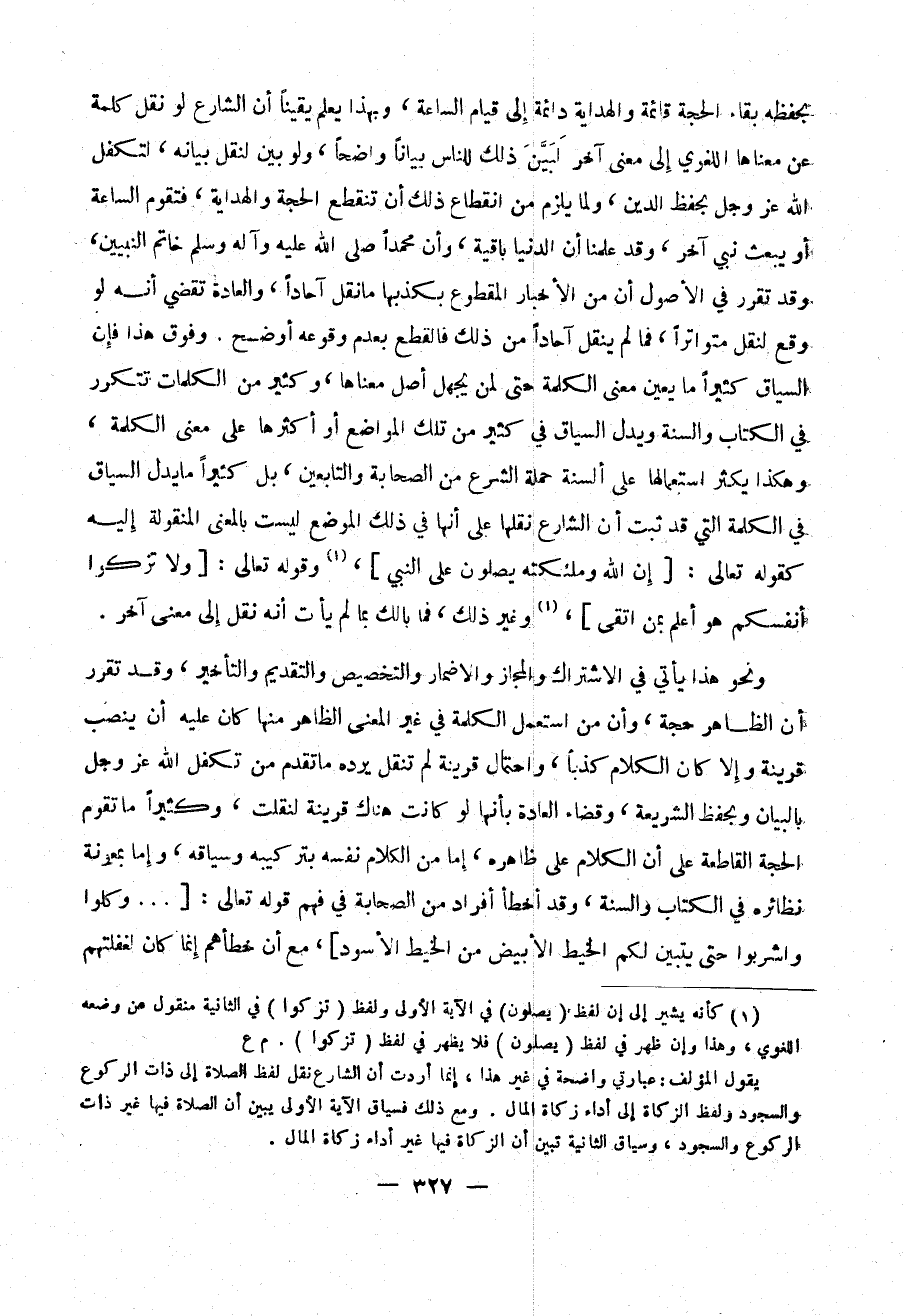 يقول المؤلف : عبارتي واضحة في غير هذا ، إنما أردت أن الشارع نقل لفظ الصلاة إلى ذات الركوع والسجود ولفظ الزكاة إلى أداء زكاة المال . ومع ذلك فسياق الآية الأولى يبين أن الصلاة فيها غير ذات الركوع والسجود ، وسياق الثانية تبين أن الزكاة فيها غير أداء زكاة المال .