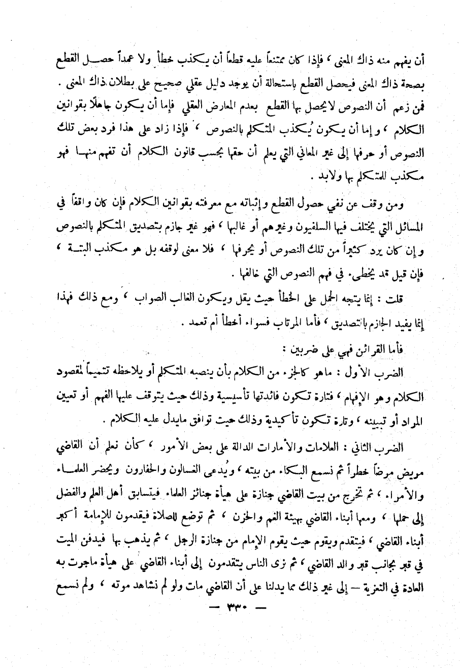 ومن وقف عن نفي حصول القطع وإثباته مع معرفته بقوانين الكلام فإن كان واقفاً في المسائل التي يختلف فيها السلفيون وغيرهم أو غالبها ، فهو غير جازم بتصديق المتكلم بالنصوص وإن كان يرد كثيراً من تلك النصوص أو يحرفها ، فلا معنى لوقفه بل هو مكذب البتة ، فإن قيل قد يخطئ في فهم النصوص التي خالفها .