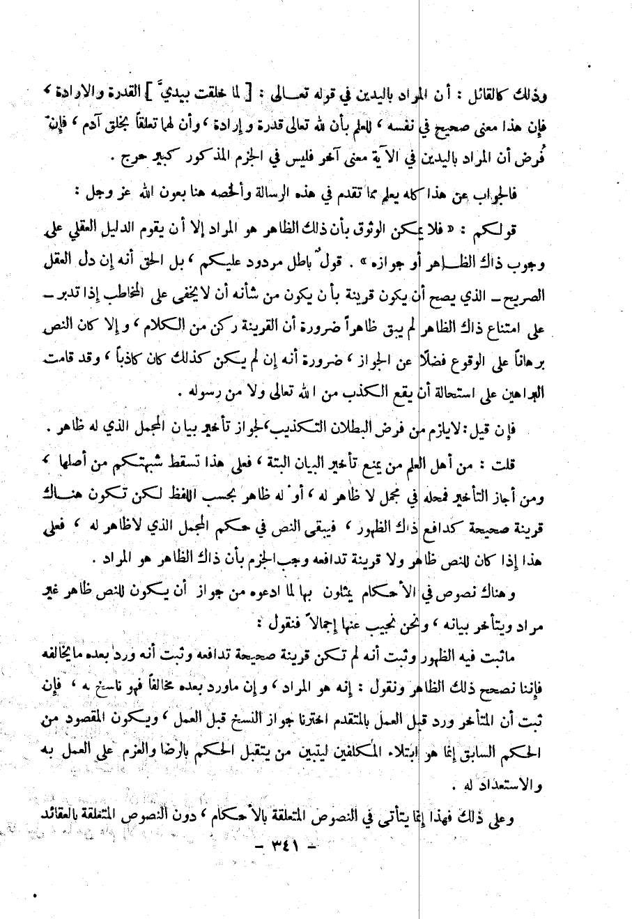 و على ذلك فهذا إنما يتأتى في النصوص المتعلقة بالأحكام ، دون النصوص المتعلقة بالعقائد