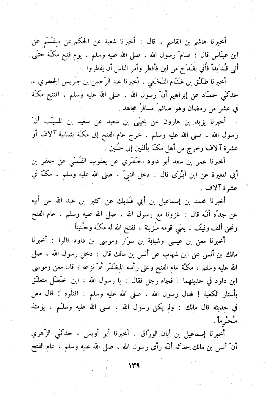 أَخْبَرَنَا طَلْقُ بْنُ غَنَّامٍ النَّخَعِيُّ، أَخْبَرَنَا عَبْدُ الرَّحْمَنِ بْنُ جُرَيْسٍ الْجَعْفَرِيُّ، حَدَّثَنِي حَمَّادٌ، عَنْ إِبْرَاهِيمَ: «أَنَّ رَسُولَ اللَّهِ صلّى الله عليه وسلم §افْتَتَحَ مَكَّةَ فِي عَشْرٍ مِنْ رَمَضَانَ وَهُوَ صَائِمٌ مُسَافِرٌ مُجَاهِدٌ»